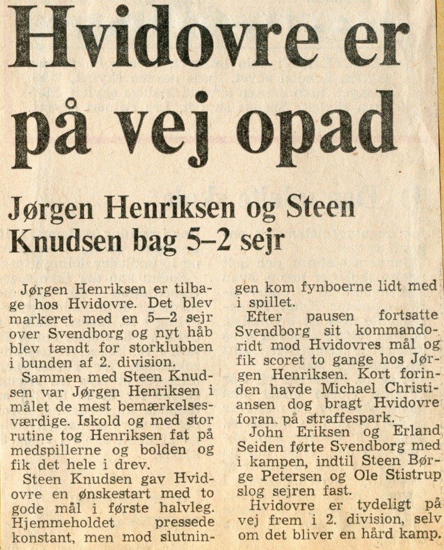Hvidovre fik en forrygende start på efterårssæsonen - og det var også nødvendigt, hvis holdet skulle redde sig fri fra nedrykning. Jørgen Henriksen var vendt tilbage fra prof-tilværelsen, Steen Knudsen var atter i HIF-dragten, og Kai Petersen var mobiliseret fra motionisternes række.