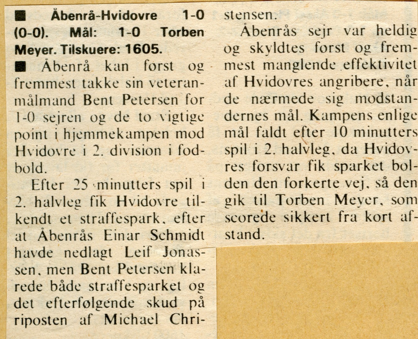 Det var et kvarters tid før slutsignalet. Åbenrå førte da 1-0 på mål af Torben Meyer efter en times spil.