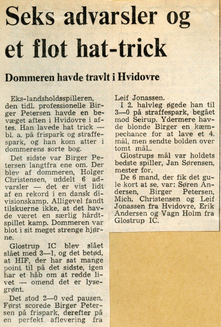 Især dommer Holger Christensen, SBU, havde en travl aften, og han nåede at få noteret seks spillere i den sorte bog med advarsler, fire til Hvidovre-spillere. Antallet af advarsler var mere udtryk for unoder end for, at kampen var hårdt spillet.