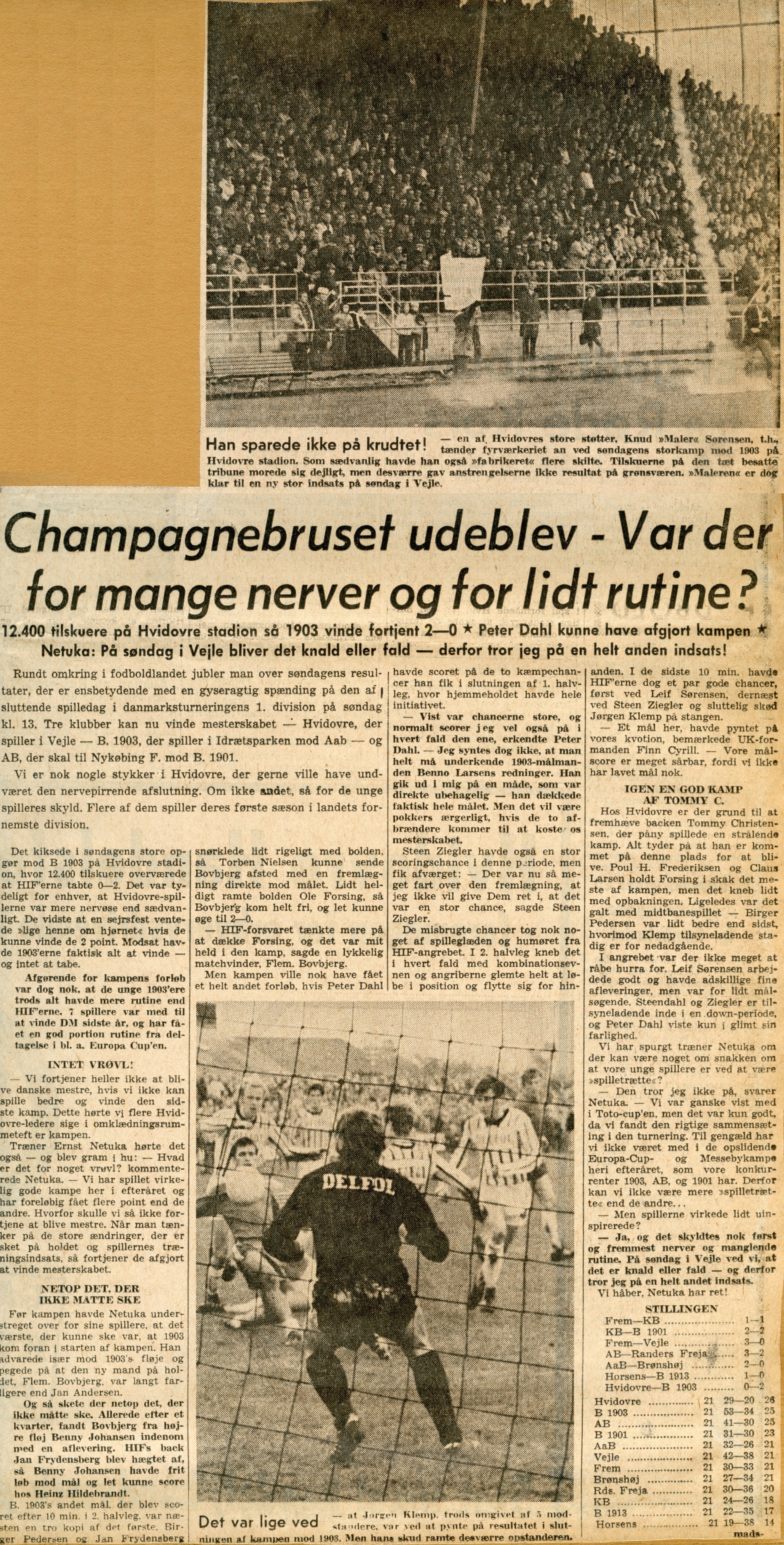 Topopgør og fest på Hvidovre Stadion, men sejr til B1903, der ellers var svækket ved at måtte undvære landsholdsspilleren og organisatoren Jan Andersen, som netop var blevet professionel.