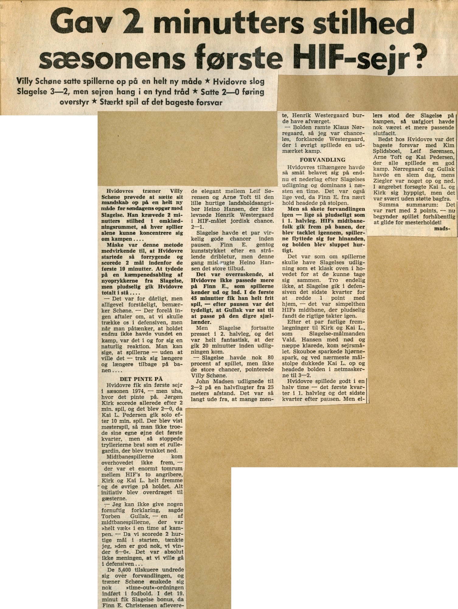 Hvidovre fik en start med mål i 2. (Jørgen Kirk) og 10. minut (Kai L. Pedersen), så man troede, at nu skulle mestrene fra i fjor ikke alene have sæsonens første sejr, men også det helt store gennembrud for 1974.