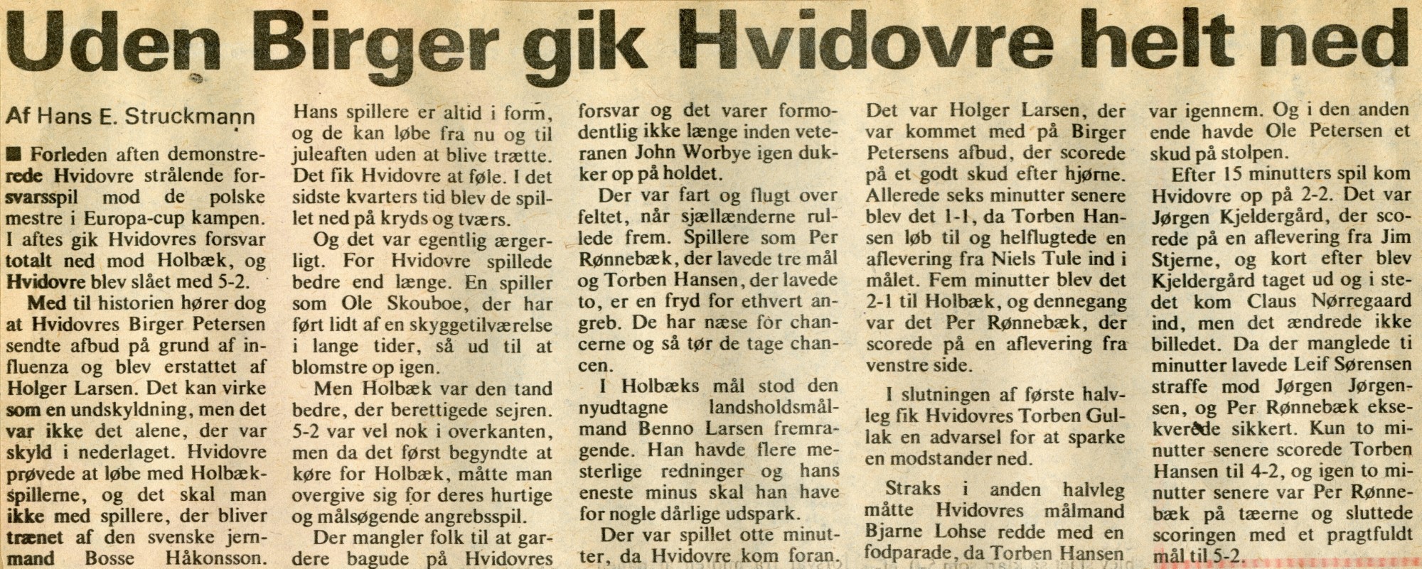 Birger Pedersen måtte sende afbud på grund af sygdom. Det blev en klam aften på Hvidovre Stadion, hvor de velspillende sjællændere sluttede kampen med fin underholdning for de mange tilrejsende tilskuere fra Holbæk —tre mål på 5 minutter.