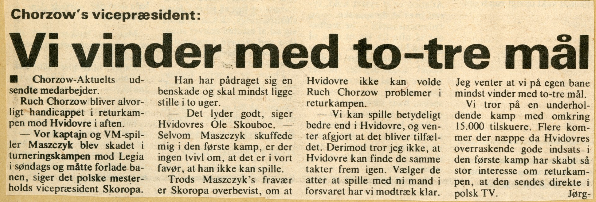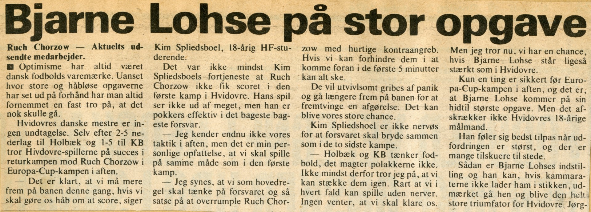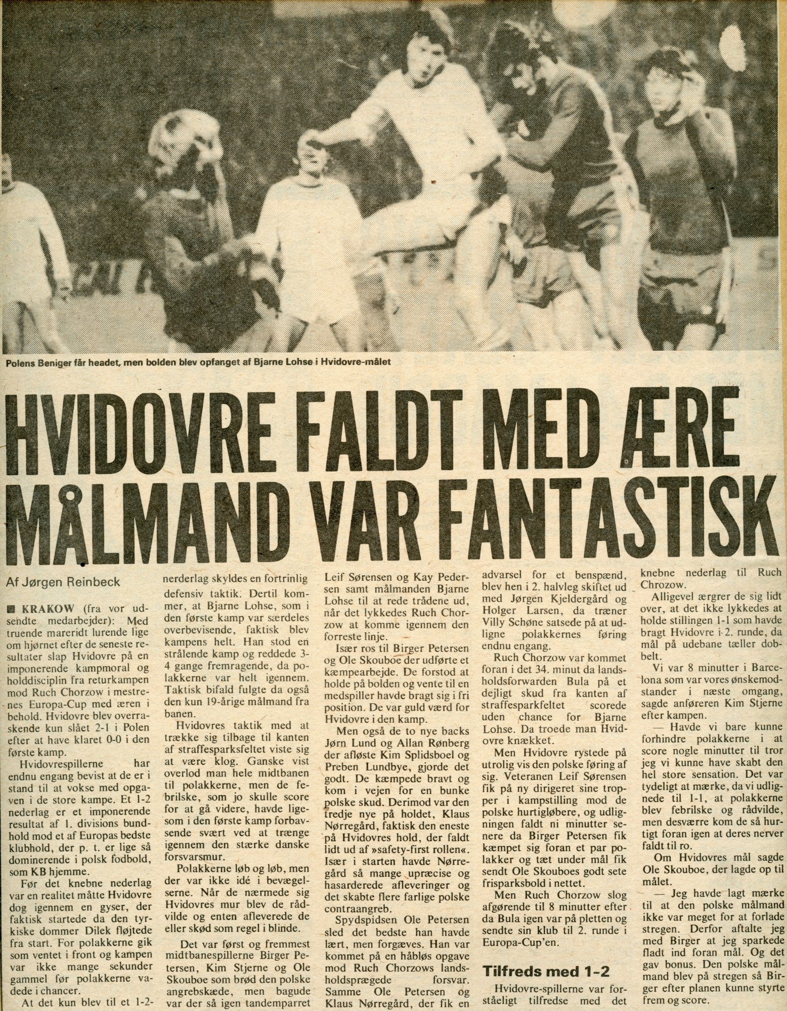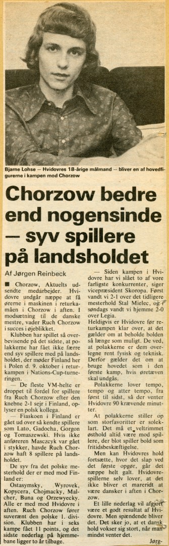 Vel - Hvidovre var lige ved den helt store overraskelse, da Birger Pedersen i begyndelsen af 2. halvleg udlignede (uafgjort med mål scoret på udebane ville have været nok til fortsættelse i turneringen), men Ruch fik kort tid efter på ny udbytte af holdets i øvrigt klare overvægt i spil.