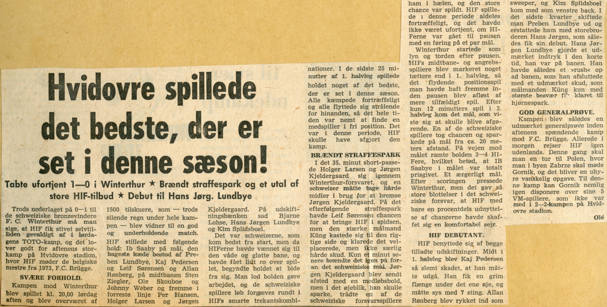 Et kvarter ind i 2. halvleg scorede schweizerne til gengæld. Et langskud snittede flere HIF'ere på vejen og snød målmanden Ib Saaby. Tidligere i kampen havde Leif Sørensen misbrugt et straffespark.
