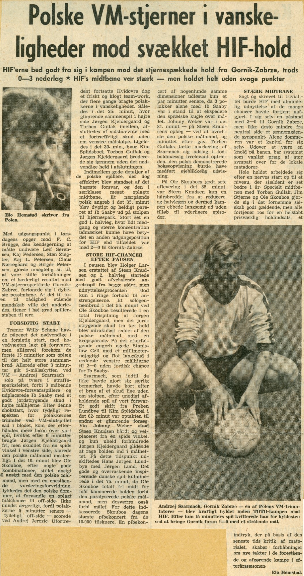Det reservespækkede hold ydede en glimrende indsats mod det stærke polske hold, stjernepræget med spillere fra sommerens succesrige polske VM-hold i Vesttyskland. Vel kunne Hvidovre ikke vinde kampen, men viste hele tiden meget fornuftigt spil, der godt kunne have fortjent at resultere i et par mål.
