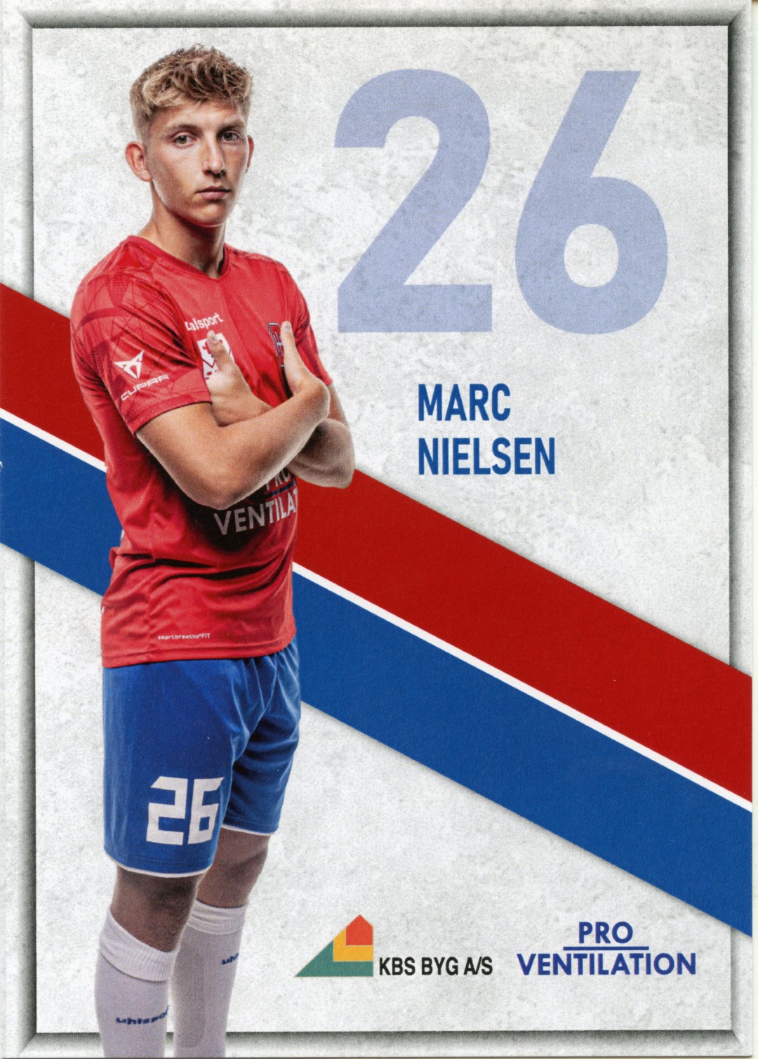 | Info: | Egen ungdomsspiller, der var med på både U-19 og U-23, inden han i foråret 2021 skrev kontrakt med Hvidovre Fodbold. Skrev i sommeren 2024 kontrakt med AaB gældende fra årsskiftet 2024/25. Grundet hans kontraktforhold med Hvidovre, ville han skulle have trænet med U23 (2.senior), og ikke spille divisionskampe hele efteråret. Det endte med, at AaB købte Marc fri fra sommeren 2024, hvilket betød at HIF fik lidt penge for ham, hvilket de ikke ville gøre fra 2025, da han der ville være kontraktfri. |