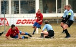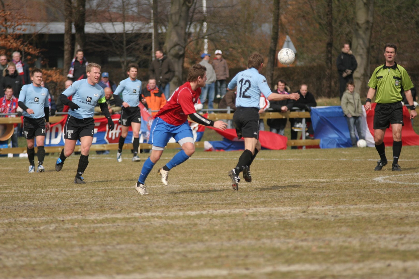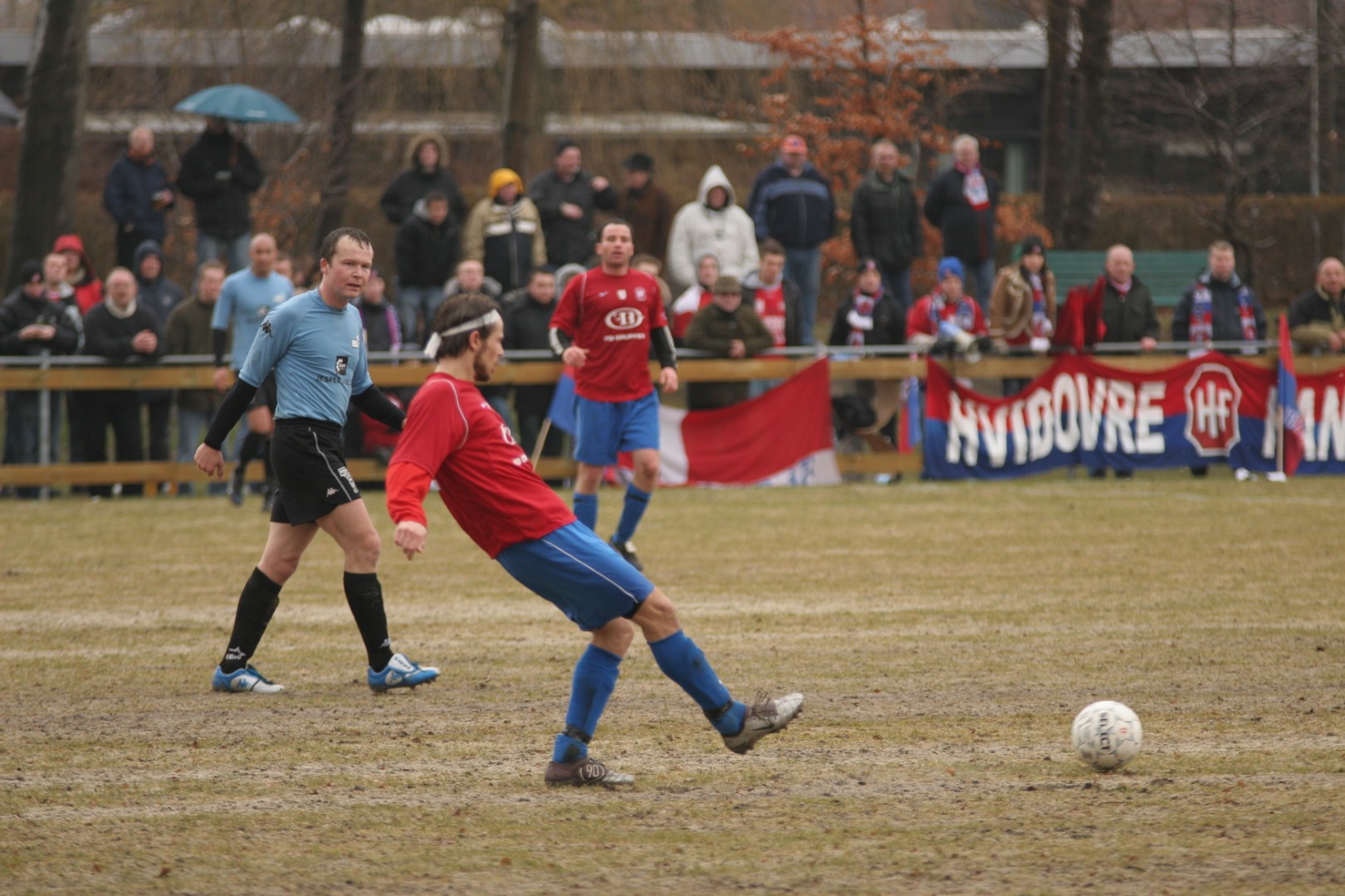 Det var med stor forventning, at to busser stillede ud fra Hvidovre Fanklub, med håbet om tre points. En vis nervøsitet var dog også at finde, for BSV er bestemt ikke noget dårligt hold, hvilket også giver sig udslag i en flot fjerdeplads i divisionen. Der skulle da heller ikke gå mere end 5 min. førend HIF viste tænder første gang. En god stikning sendes frem til Michael Barfoed, som desværre tackles i skudøjeblikket. En vis indikation af dommerens linie, kunne man se efter 7 minutter. En BSV-spiller fik gult for at brokke sig. Mere om det. Minuttet efter spiller Bo Nielsen godt ud i højresiden til Barfoed, som sender en perfekt pasning ind over, men en BSV-spiller kommer lige nøjagtigt forrest, og får givet hjørne. Dette sendes ind over, op dukker Mark Svendsen, og til stor jubel, sender han med hovedet bolden i nettet til 0-1. Herefter er der en del spillen frem og tilbage, og BSV viser at de er farlige, når de spiller langs med jorden. Dette betyder, dog efter et højt indlæg, at en BSV-mand står helt alene, og med en følt inderside, gør han det til 1-1. Her viste HIF, hvor de kan være lidt sårbare. Når bolden havner i det lille felt, ser man en anelse panik. Det var også en tendens i træningskampene. Men ellers står forsvaret upåklageligt. I det 22. minut er der frispark til HIF i venstresiden, lige uden for feltet. Rasmus Wulff sparker blødt ind over, og bolden går uhindret i mål. Det er dog Steen Nedergaard, der krediteres i højtalerne, men, fra hvor jeg står, kan jeg ikke helt se det. HIF har i denne periode en lille overtag, men BSV er stadig farlige i kontrasituationerne. Mark Svendsen har en stor chance efter 27 minutter, men hans hovedstød går lige på BSV's målmand. Minuttet efter er HIF's forsvar igen spillet tyndt, men heldigvis går afslutningen på overliggeren, og springer i spil igen. Der dømmes heldigvis offside, da riposten opsnappes i strafbar position. I det 34. minut er der frispark, igen i venstresiden, til HIF. Morten Andersen sparker mod det korte hjørne, målmanden når ned, men kan ikke holde bolden, og Mark Svendsen presser, men målmanden får den i anden omgang. Med små 5 minutter tilbage af første halvleg, er det HIF, der får en kontra. Bo Nielsen spiller til Barfoed, som spiller videre igennem BSV-forsvaret, og Mark Svendsen løber imellem og opsnapper bolden, men hans afslutning blive for svag og går ved siden af. I samme minut er BSV tæt på et selvmål efter HIF-hjørne.