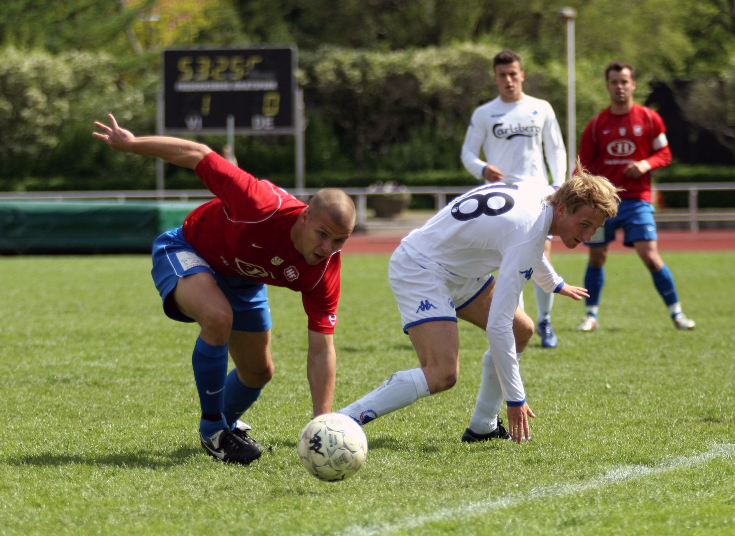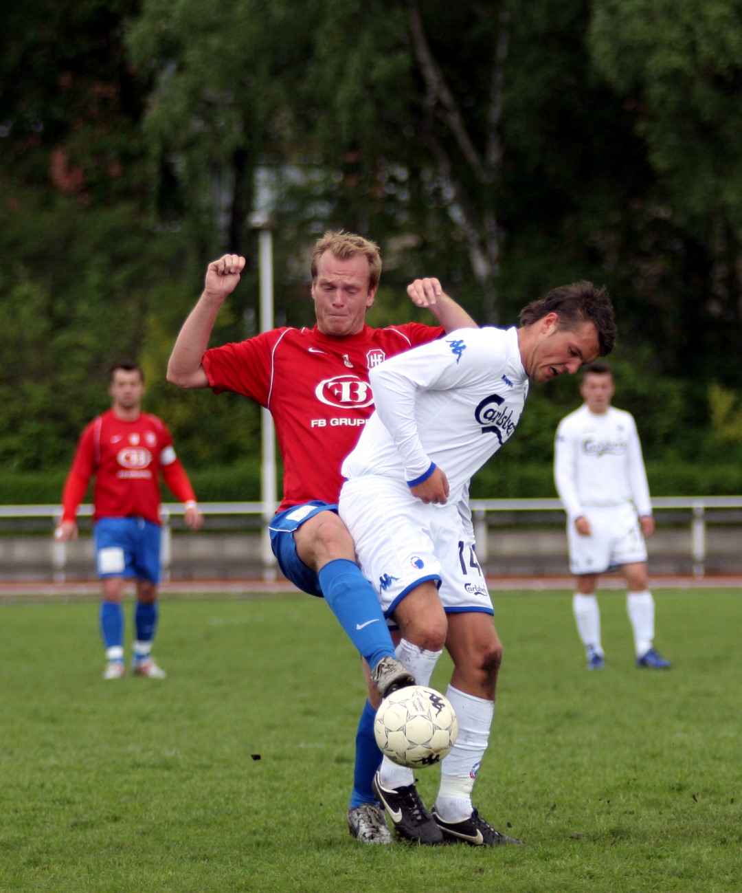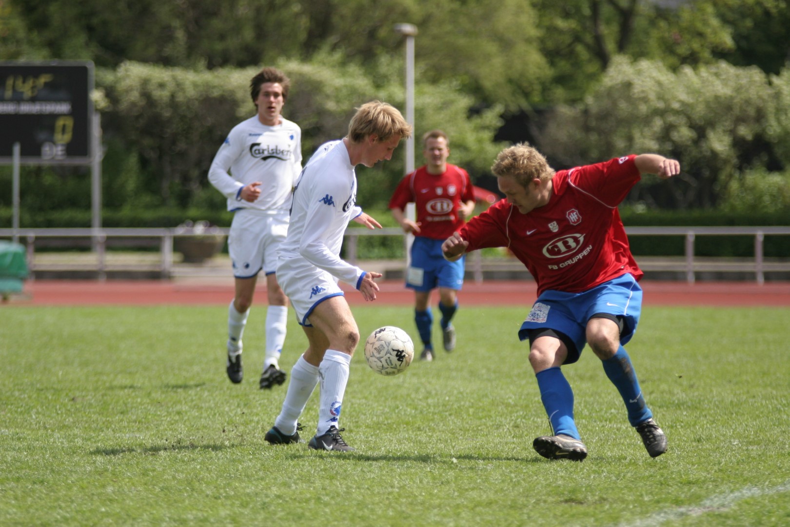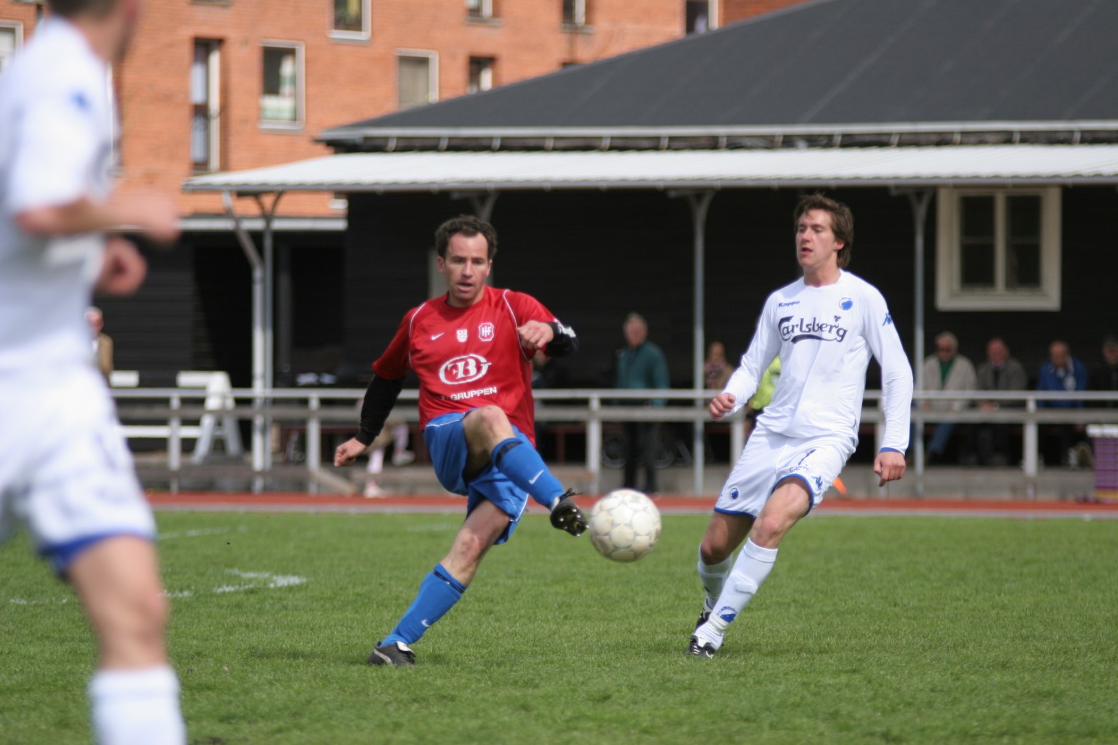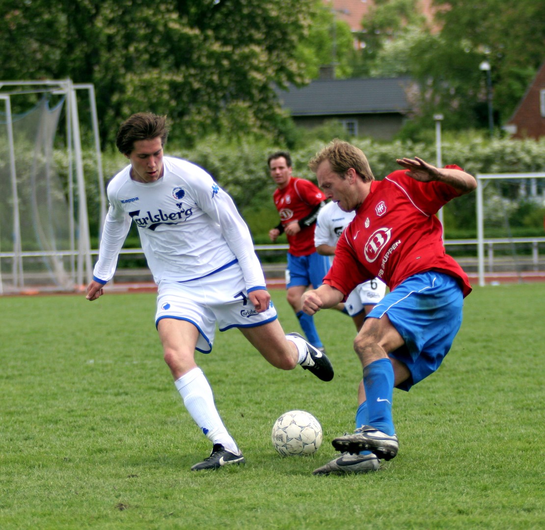Igen i dag så vi, hvor modbydeligt ondt fodbold kan være, eller rettere, at man ikke vinder, når bolden ikke kommer i kassen. Trods en klar overvægt i spil, vel omkring 80-85%, så brændes der for mange chancer, specielt når man SKAL vinde. Kampen var knap et minut gammel, da Michael Barfoed jagter en tilbagelægning, men KB's målmand får fat i bolden før Michael. Det skal endvidere nævnes, at KB's målmand nok var sit holds bedste i dag, og virkelig blev spillet varm af Hvidovre. Minuttet efter er det Christian Lundby, der jagter en tilbagelægning, men han afvises af målmanden. Endnu et minut senere har KB en af deres få chancer, da Barfoed mister bolden midt på egen banehalvdel, og giver en friløber, men Mads Hamberg, kommer godt ned og redder skuddet. Så skulle der gå tre minutter, da KB igen får en kontra, og Mads Torry udplacerer en sagesløs Hamberg. 1-0 og en kold dukkert så hurtigt. HIF maser på, og har herefter adskillige chancer for at udligne. Allerede to minutter efter scoringen har Morten Andersen en god tværpasning til Michael Barfoed, som sætter KB-målmanden på prøve med et godt skud. 9. minut, "Didi", som har fået chancen fra start, sender, efter et godt gennembrud på venstrekanten, bolden ind over til Christian Lundby, som desværre får nipset, og chancen løber ud i sandet. 11. minut. Mark Svendsen går alene igennem og forsøger et langskud uden for feltet, men desværre lige forbi stolpen. Et par enkelte chancer mere til HIF, inden en af de større kommer i det 16. minut. Mike sender bolden ud i siden til Barfoed. Han spiller tilbage til Mike, der er gået med frem, han trækker ind i feltet, men hans afsluttende skud, går lige forbi sammenføjningen. 19. minut, KB får etableret et godt angreb i deres venstreside, men afslutningen går over. 24. minut. Rasmus Wulff presser godt i feltet, og der gives hjørne til HIF. Barfoed modtager bolden, spiller godt ind over, endelig væk fra målmanden, som tager ALT, der kommer i feltet, Mark Svendsen afslutter, lige ved siden af. 36. minut, frispark til HIF. Rasmus Wulff spiller fladt frem til Barfoed, som spiller godt ind over, og KB er nødt til at give indkast. I det sidste minut af første halvleg, har HIF igen frispark, som tages efter samme mønster. Desværre får ingen fulgt ordentligt op, så bolden går helt ind til målmanden. En begivenhedsrig første halvleg, med mange store HIF-chancer, uden det store udbytte, og to-tre reelle chancer til KB, hvoraf den ene går ind.