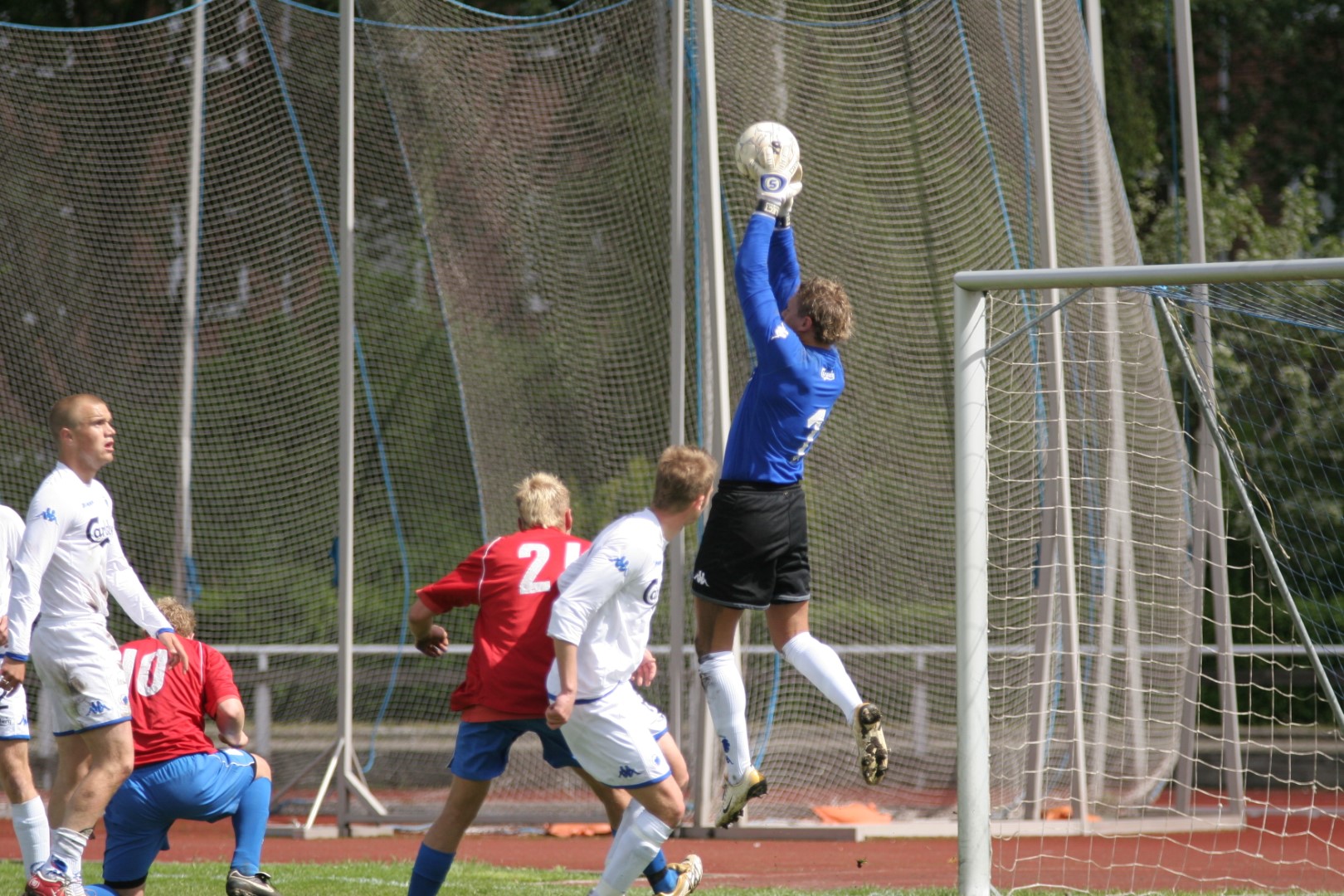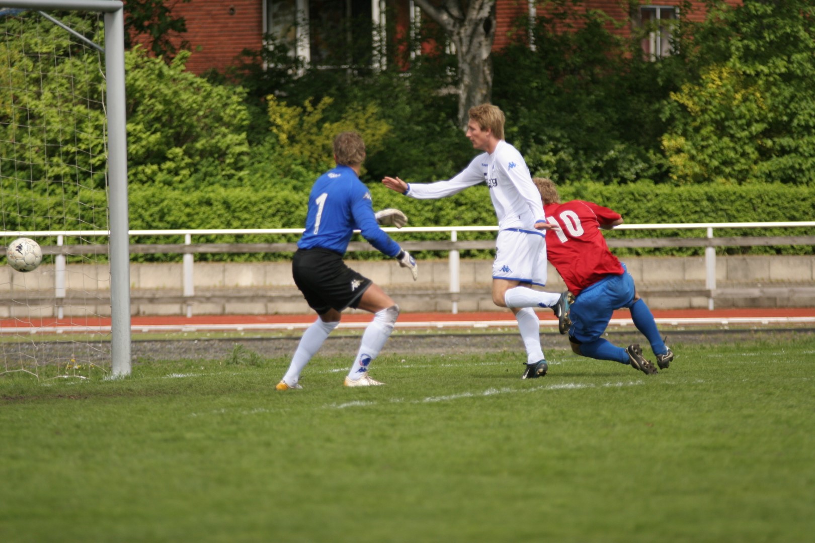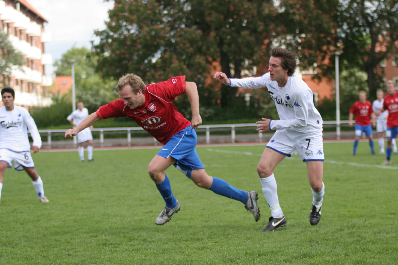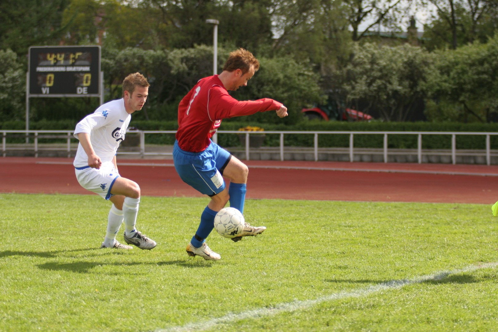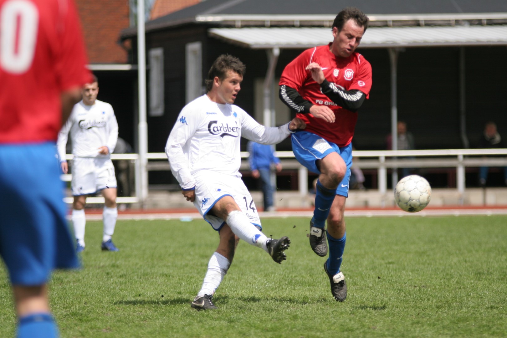Igen i dag så vi, hvor modbydeligt ondt fodbold kan være, eller rettere, at man ikke vinder, når bolden ikke kommer i kassen. Trods en klar overvægt i spil, vel omkring 80-85%, så brændes der for mange chancer, specielt når man SKAL vinde. Kampen var knap et minut gammel, da Michael Barfoed jagter en tilbagelægning, men KB's målmand får fat i bolden før Michael. Det skal endvidere nævnes, at KB's målmand nok var sit holds bedste i dag, og virkelig blev spillet varm af Hvidovre. Minuttet efter er det Christian Lundby, der jagter en tilbagelægning, men han afvises af målmanden. Endnu et minut senere har KB en af deres få chancer, da Barfoed mister bolden midt på egen banehalvdel, og giver en friløber, men Mads Hamberg, kommer godt ned og redder skuddet. Så skulle der gå tre minutter, da KB igen får en kontra, og Mads Torry udplacerer en sagesløs Hamberg. 1-0 og en kold dukkert så hurtigt. HIF maser på, og har herefter adskillige chancer for at udligne. Allerede to minutter efter scoringen har Morten Andersen en god tværpasning til Michael Barfoed, som sætter KB-målmanden på prøve med et godt skud. 9. minut, "Didi", som har fået chancen fra start, sender, efter et godt gennembrud på venstrekanten, bolden ind over til Christian Lundby, som desværre får nipset, og chancen løber ud i sandet. 11. minut. Mark Svendsen går alene igennem og forsøger et langskud uden for feltet, men desværre lige forbi stolpen. Et par enkelte chancer mere til HIF, inden en af de større kommer i det 16. minut. Mike sender bolden ud i siden til Barfoed. Han spiller tilbage til Mike, der er gået med frem, han trækker ind i feltet, men hans afsluttende skud, går lige forbi sammenføjningen. 19. minut, KB får etableret et godt angreb i deres venstreside, men afslutningen går over. 24. minut. Rasmus Wulff presser godt i feltet, og der gives hjørne til HIF. Barfoed modtager bolden, spiller godt ind over, endelig væk fra målmanden, som tager ALT, der kommer i feltet, Mark Svendsen afslutter, lige ved siden af. 36. minut, frispark til HIF. Rasmus Wulff spiller fladt frem til Barfoed, som spiller godt ind over, og KB er nødt til at give indkast. I det sidste minut af første halvleg, har HIF igen frispark, som tages efter samme mønster. Desværre får ingen fulgt ordentligt op, så bolden går helt ind til målmanden. En begivenhedsrig første halvleg, med mange store HIF-chancer, uden det store udbytte, og to-tre reelle chancer til KB, hvoraf den ene går ind.