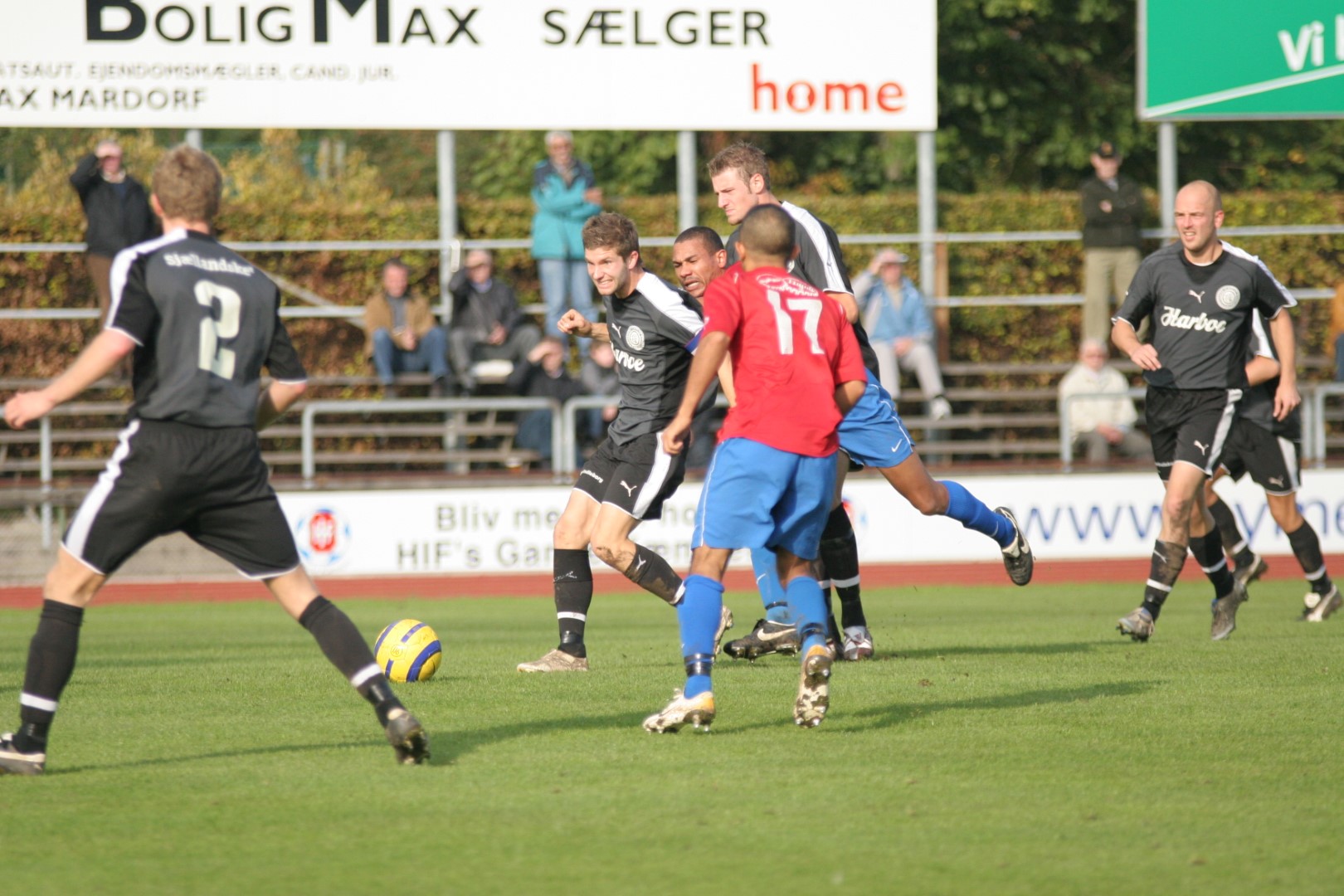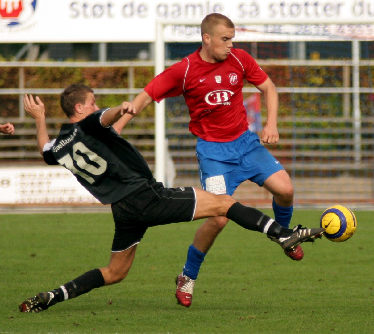 Håbet var grønt, da vi i dag tog i mod Slagelse på Hvidovre Stadion. Med de to foregående nederlag, og specielt nedturen mod Skovlunde, in mente, skulle det være i dag, at vi skulle se, om holdet kunne rejse sig igen. Men ak og ve. Det blev en ynkelig omgang alibifodbold, hvor det mest gjaldt om at gemme sig bag en modstander, eller ramme ved siden af den medspiller, som man nu forsøgte at spille. Det er svært at finde blot et lille håb, når det ser sådan ud, som det gjorde i dag. HIF starter lidt forsigtigt, og jeg tror at man håbede at få lokket Slagelse frem på banen, for der var ingen tvivl om, at de ville stå defensivt. Første Hvidovre-chance er efter 9 minutter, da en lang bold spilles frem til Mark Svendsen, men desvære sjutter bolden i nedslaget og springer for langt frem, men derudover dømmes Mark også, korrekt, off-side. Minuttet efter får HIF et frispark i højresiden, Jonas Schumacher sparker ind i feltet, men igen sjutter bolden på den våde græs, og Slagelses målmand får grebet bolden ud. I det 19. minut kæmper Mikail Anli bolden fra en Slagelse-forsvarer, han dribler ind i feltet, og spiller til "Didi", men han er i denne situtation ikke hurtig nok, og chancen forpasses. Så kommer den første dukkert. På sit absolut første reelle angreb, får HIF ikke afvist Slagelses pres godt nok, og bolden havner hos Thomas Mikkelsen, der sparker hårdt, hen over hovedet på Mads Hamberg, der forsøger at gribe bolden, men den smutter imellem hænderne på ham og ind i mål til føring til Slagelse. Det er godt nok mange år siden jeg stod på mål, men en af de lærdomme jeg husker er, at når man skal gribe, så skal tommelfingrene næsten holdes sammen, netop for at bolden ikke skal smutte i mellem. Så må man hellere bokse bolden langt væk. Nå, men op på hesten igen. Vi har jo før set, at når HIF er kommet bagud tidligt i kampen, så får spillerne slaget vendt, og kommer sejrrigt ud. Og der var jo masser af tid tilbage. Tre minutter senere spilles en lang bold frem til Mark Svendsen, og han kæmper også det bedste han har lært, men trykkes ned, og får ikke indhentet muligheden. Minuttet efter endnu et godt HIF-angreb, men der er ingen til at samle indlægget op i feltet, og muligheden løber ud i sandet. I det 26. minut kommer Didi endelig igennem på kanten, og spiller ind i feltet mod Mark, men målmanden, som i øvrigt stod en brandkamp, kommer først og griber bolden. Minuttet efter, næsten samme situation, men nu får Mark hovedet på, og efter et rigtigt godt hovedstød, som målmanden ikke kan holde fast på, går bolden til hjørnespark, som dog lægges for tæt på, og gribes ud. Herefter sker det meste af spillet på midten, og til siden, og bagud, lige ind til det 39. minut, hvor Slagelse's Kasper Mikkelsen slider sig fri på kanten af feltet, og med et følt spark, går bolden via indersiden af stolpen, i nettet til en 0-2 føring til Slagelse. Her er Mads Hamberg sagesløs. HIF forsøger nu at presse, og i halvlegens døende minut, lægger Mikail Anli perfekt bolden ind til Patrik Jensen, som snitter bolden, men en fantastisk redning af Slagelse's målmand, giver hjørne i stedet. Her får Jesper Myhrmann hovedet på, men bolden går over målet. Nå, men vi har jo før været bagud med 2-0 til Slagelse, og på en god slutspurt scoret 3 mål i de sidste 20 minutter, så håbet var ikke ude endnu.