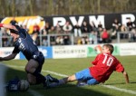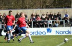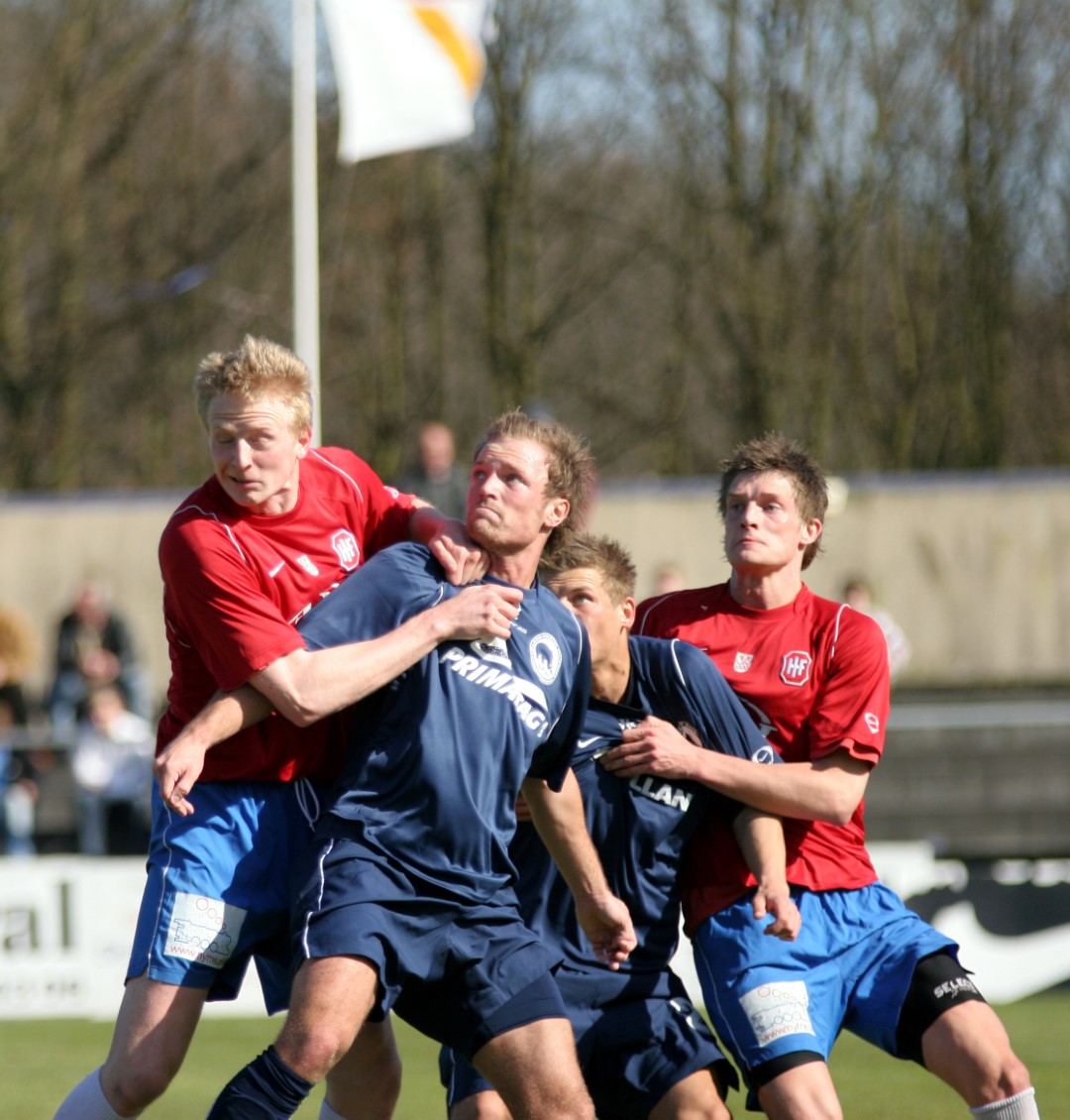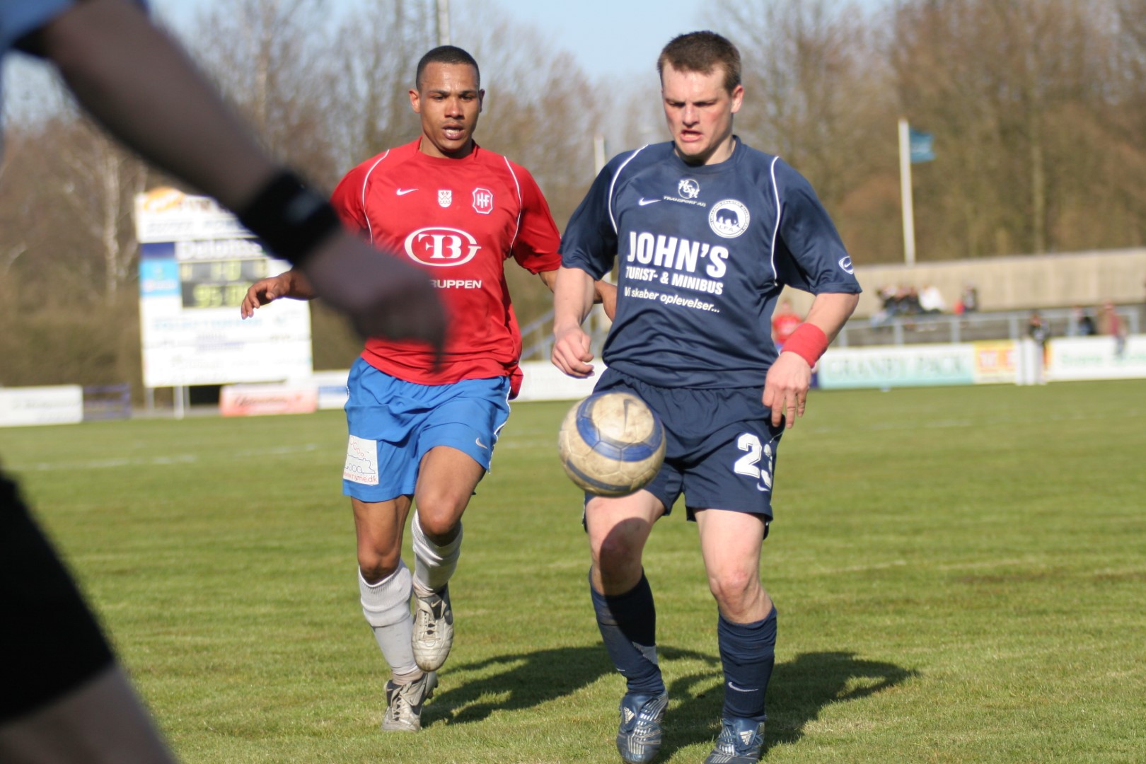 Der var dømt topkamp, da Lolland Falster Alliancen tog i mod Hvidovre IF. Første halvleg var dog Alliancens, selvom det var HIF, der havde de største chancer. Begge hold starter forsigtigt ud, og hos Hvidovre var man nødt til et par omrokeringer, da Rasmus Wulff og Benno Petersen begge var ude med karantæner. Den første spinkle chance tilfalder LFA efter 4 minutter, da en stikning sendes på tværs til en helt fri LFA’er (offside ?). Søren Christiansen presser ham dog til at skyde fra kanten af feltet, og Mads Hamberg kan let samle op. Lars Hjortshøj fældes minuttet efter lige uden for eget felt, med en grim stempling på skinnebenet, og vi var mange, der frygtede at han var nødt til at udgå. Han kom dog på benene igen, og fuldførte kampen, selvom det ikke var sidste gang, at Lars var nede i denne kamp. Et godt HIF-angreb i det 7. minut, startet af Søren Christiansen i venstresiden, hvor der spilles 1-2 med Mikail Anli, sendes ind i feltet, men ingen er nået med frem og LFA giver hjørnespark. Dette giver LFA et kontraangreb, men Kasper Gørsvig når med hjem, og generer LFA’eren tilpas meget, så det løber ud i sandet. I det 11. minut sendes et frispark godt ind i LFA-feltet, hvor Jesper Kristoffersen når højest, men der kommer ikke nok fart på hovedstødet, som går lige i favnen på LFAs målmand. I det 13. minut falder Søren Christiansen uheldigt. Ifølge ham selv, så sker der det, at da han løber forbi en LFA’er, kommer denne til at træde på hans snørebånd, ved et uheld. Søren snurrer rundt i luften i faldet, og lander på den ene skulder. Skulderen røg en smule ud af led, og en undersøgelse på skadestuen senere torsdag, skulle kunne fortælle om der er sket noget med ledbåndene. Men drønærgerligt for Søren. Det giver en udskiftning et par minutter senere, hvor man så er nødt til at rokere rundt på holdet. Ayoub Sørensen kommer på banen, og bliver sendt frem på venstrekanten. Lars Hjortshøj rykkes ned som venstreback, og Nicolai Harms rykkes over på højrefløjen. I det 18. minut slåes Hjortshøj omkuld i en nærkamp, det giver et frispark, men burde også have givet gult kort til LFA’eren. 2 minutter senere kommer halvlegens velnok største chance. Efter et frispark til HIF, får LFA ikke afvist. HIF holder presset, og Nicolai Harms sender, fra midten af feltet, en følt bold henover LFA’s målmand, men den tager undersiden af overliggeren og springer ud igen, hvor Ayoub Sørensen samler op, men hovedstødet får ikke fart nok på. Men det ville ikke være ufortjent, hvis der efter dette havde stået 1-0. To minutter senere, tryller Ayoub og Harms på venstresiden, Harms får lagt ind over, men desværre for langt. I det 24. minut kommer et godt indlæg fra højresiden, LFA-målmanden fumler lidt med bolden efter et let pres fra Ayoub Sørensen, men får aligevel fat. Hjortshøj får et gult kort i det 27. minut, da han løber sammen med en LFA’er, hvor de begge kigger væk fra hinanden og efter bolden. Men det var nok det gule kort, som en LFA’er tidligere skulle have haft. Nu kommer der en stilstand på små ti minutter, hvor der ikke sker det store. LFA får dog et mindre overtag, og i det 37. minut får de presset HIF i eget felt. En LFA’er forsøger i fri position at skyde mod mål, men rammer skævt, hvor Hamberg forsøger at samle op, men en anden LFA’er, der står lige skråt bagved Hamberg, får i stedet fat, og sender bolden i kassen. Efter min bedste overbevisning, så er alle andre HIF’ere foran Hamberg, og så bør der vel dømmes offside ??. Muligvis er der en HIF’er mellem Hamberg og LFA’eren, der forsøger først, men han er stadig foran, og dermed er LFA’eren, der scorer, sidste mand. HIF fortsætter dog ufortrødent, trods den kolde spand vand. Det giver endnu en stor chance i det 43. minut, da Jesper Kristoffersen får sidste fod på efter et frispark, men målmanden, som også, mener jeg, var LFAs bedste, kommer godt ned og får hentet bolden. To minutter senere, sendes Ayoub afsted med en lang stikning, men fra kanten af det lille, skyder han forbi. To minutter inde i overtiden når, først LFA at få afsluttet, dernæst at få et gult kort, og i modsatte ende når HIF en afslutning, der for mig at se, går på hånden af en LFA’er. Men den er jeg parat til at diskutere forsætteligheden i. Det er jeg ikke i to situationer i 2. halvleg, som jeg skal komme tilbage til. Halvlegen afsluttes uden yderligere kommentarer.