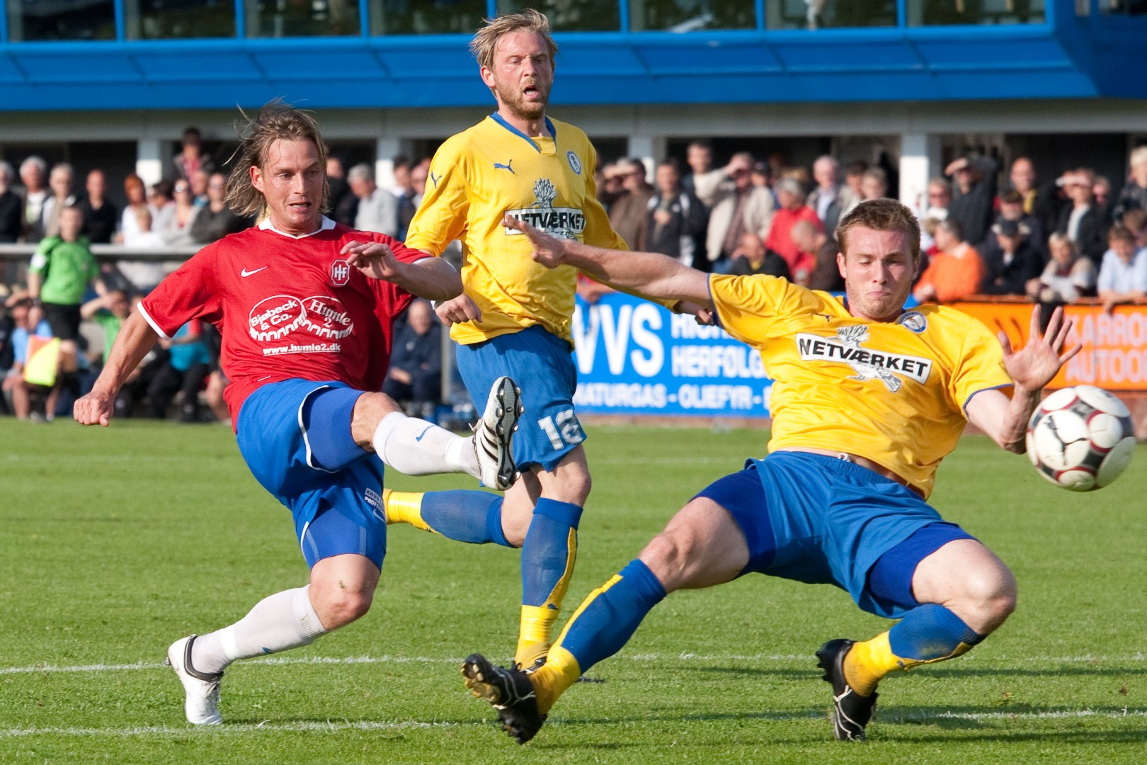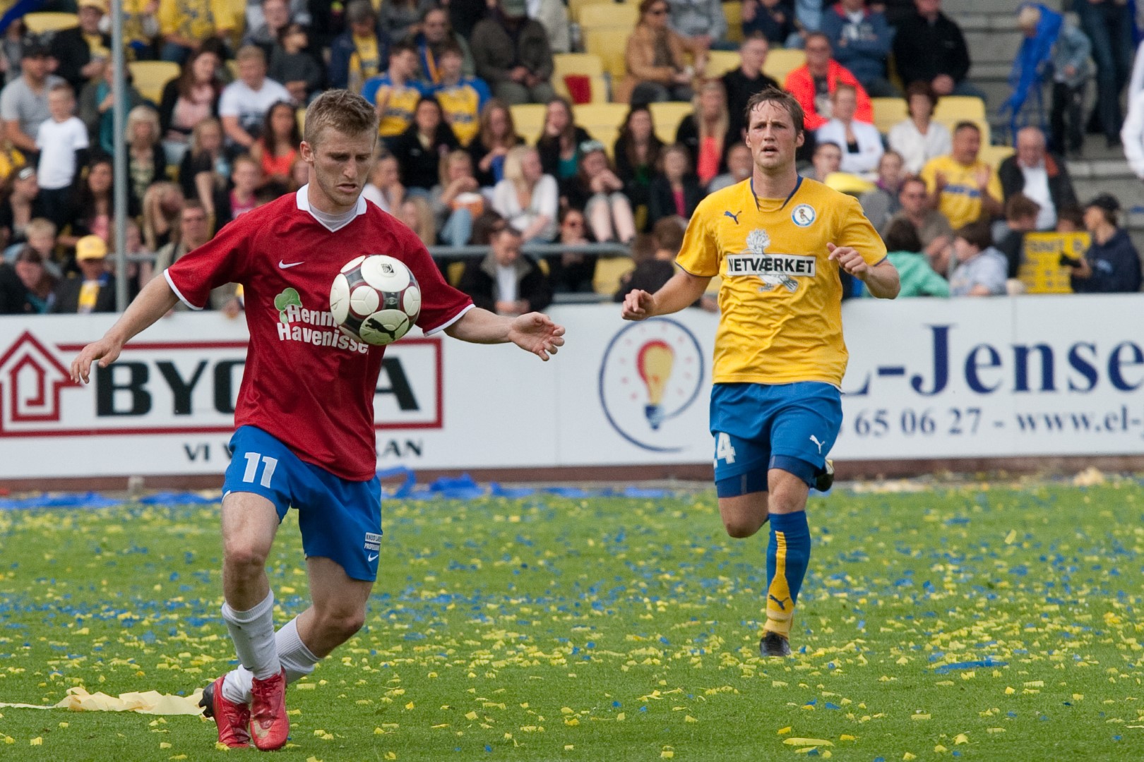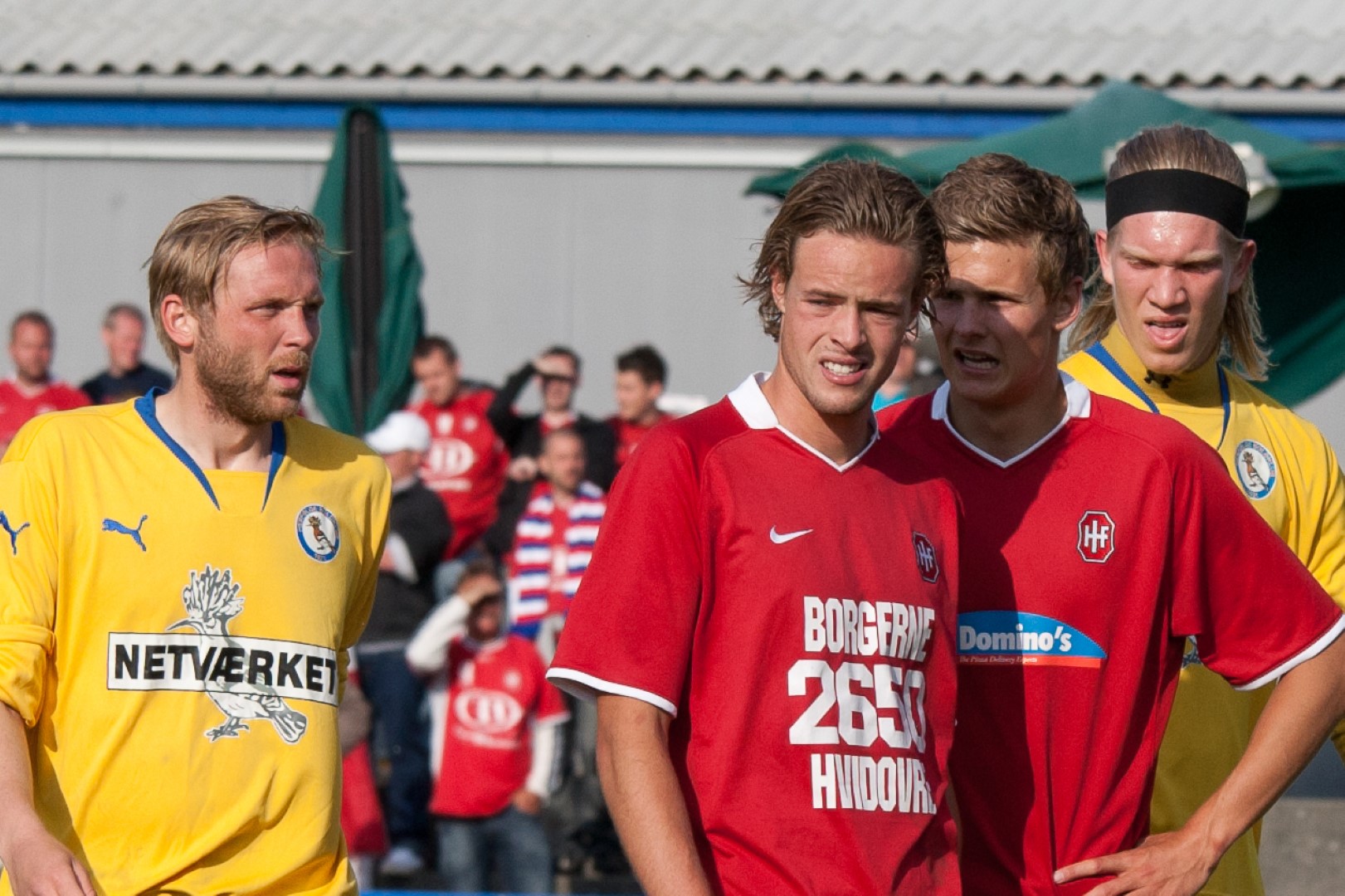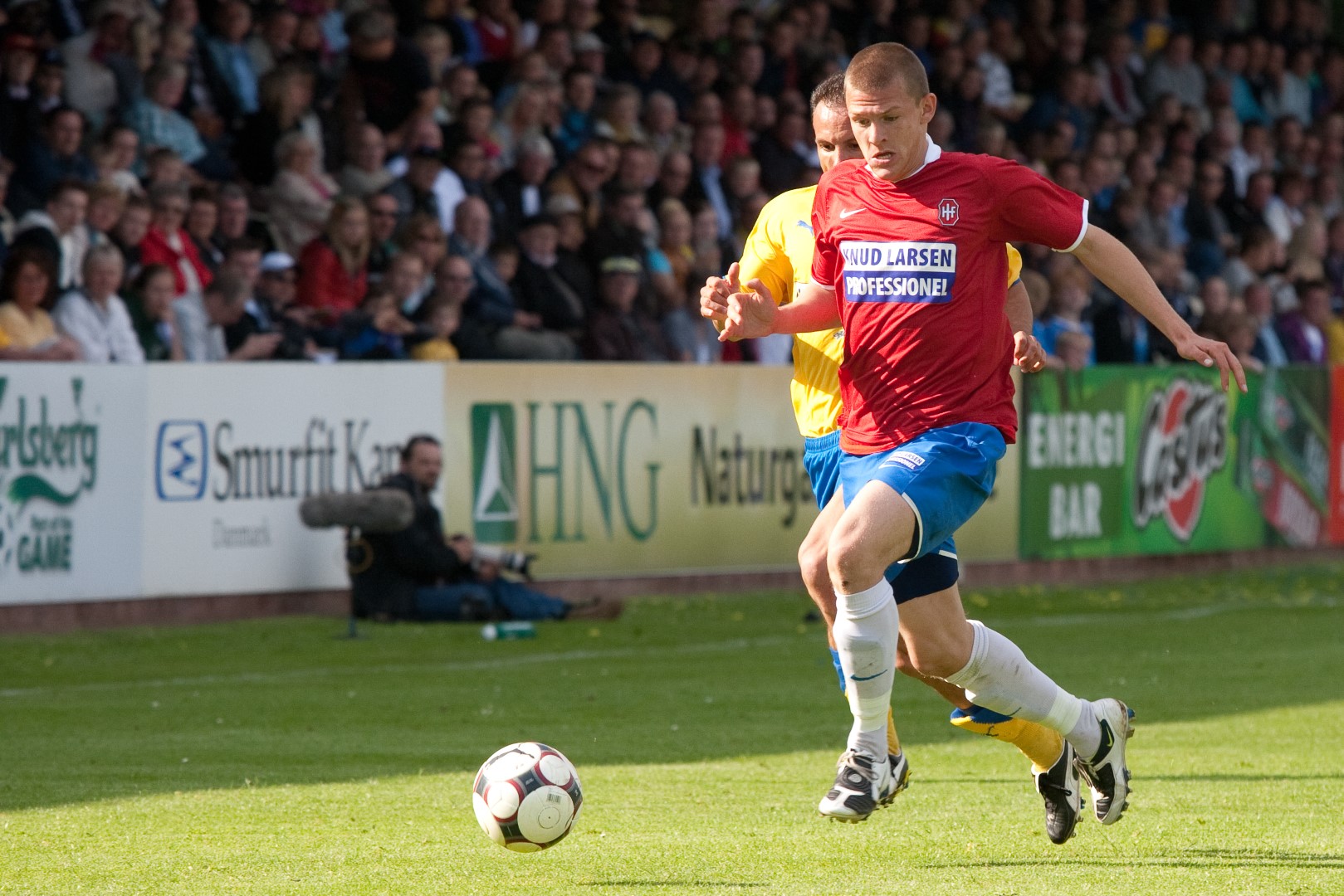 En helt igennem underlig forårssæson, skulle i dag afsluttes på Herfølge Stadion. Herfølge som allerede inde kampen havde sikret sig oprykningen til Superligaen, stillede med et helt hold nye spillere, og kun een var genganger fra ugens startopstilling mod AB. Endvidere var det også Herfølges sidste kamp på topplan, da de fra næste sæson bliver slået sammen med Køge Boldklub under navnet HB Køge. De første 20 minutter, står der HIF på. Hvidovre formår at få presset Herfølge tilbage, og det var kun få gange, man så dem fremme i Hvidovres felt. Det blev til et par enkelte HIF chancer, og måske et manglende straffespark, da Anders Clausen bliver skubbet omkuld, med begge Herfølge-forsvarerens hænder i ryggen - det er tydeligt hvorfra jeg står, men det kan være at Clausen faldt lige lovligt let. Til gengæld bliver HIF snydt for et af de store straffespark, da Walldo bliver nedlagt i feltet af Herfølges målmand. Efter et forsøg, som målmanden parerer, triller bolden ud til siden, og Walldo forsøger at løbe den op. Herfølges målmand stikker dog - benet eller armen - op i knæhaserne på Walldo, og han falder omkuld. Men også denne gang, er dommerens fløjte tavs. Herfølges, indtil nu, største chance, kommer efter 20 minutter, da de får bolden i nettet. Men liniedommeren vinker for offside. Den næste store chance får Herfølge i det 25. minut, da de efter et rigtig godt opspil på kanten, får spillet bolden i feltet, men afslutningen fra midten af HIF-feltet, tager oversiden af overliggeren. I det 39. minut, kommer så første scoring. Herfølge får presset HIF efter et indlæg til fjerneste stolpe, og med ryggen mod Hvidovremålet får Anders Dahl Simonsen saksesparket bolden over Lasse Krogh. 1-0, og det kan der egentlig ikke rokkes ved. Minuttet senere får HIF så muligheden, men Walldo får ikke hovedet ordentligt på et ellers godt indlæg, og Herfølge får afværget.