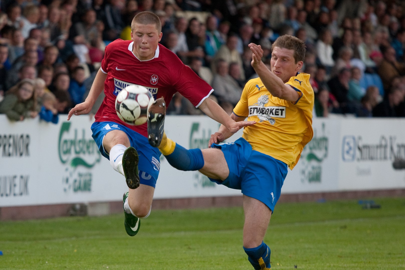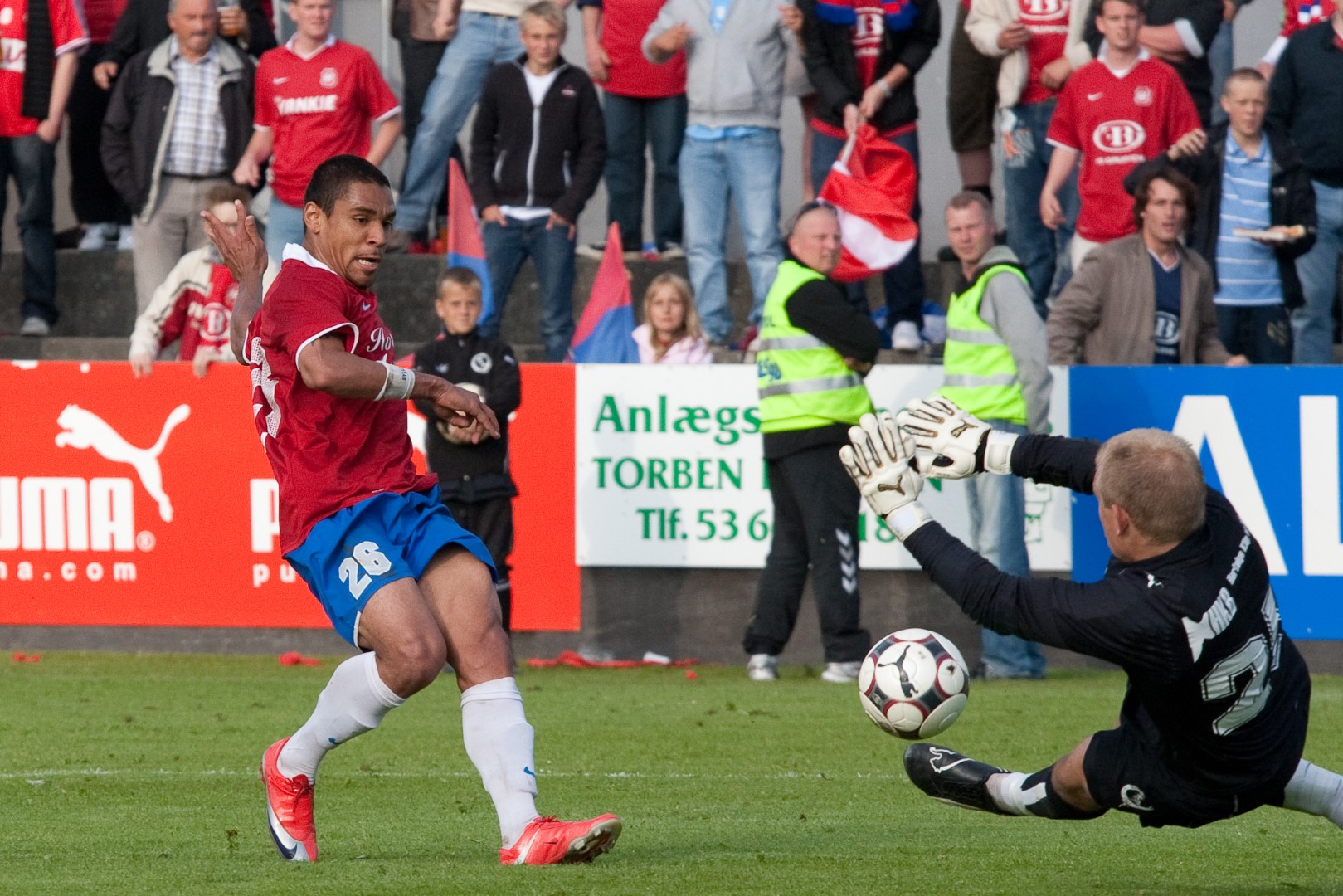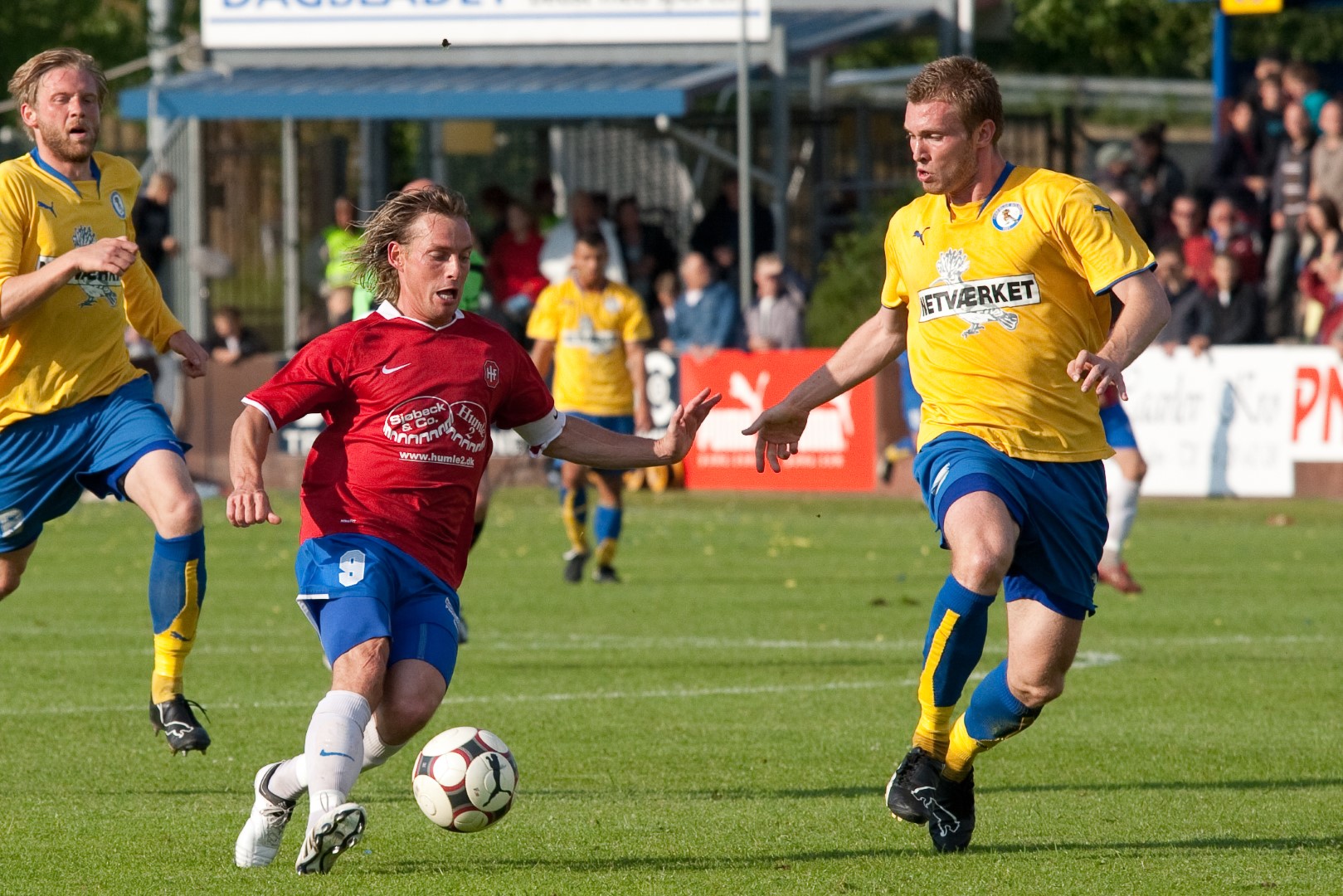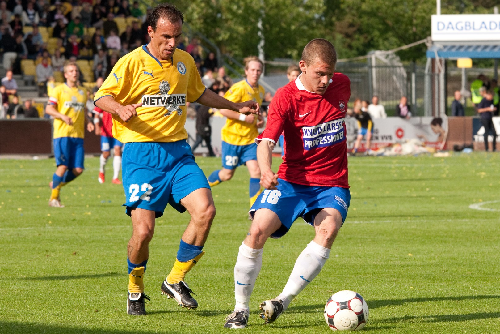 En helt igennem underlig forårssæson, skulle i dag afsluttes på Herfølge Stadion. Herfølge som allerede inde kampen havde sikret sig oprykningen til Superligaen, stillede med et helt hold nye spillere, og kun een var genganger fra ugens startopstilling mod AB. Endvidere var det også Herfølges sidste kamp på topplan, da de fra næste sæson bliver slået sammen med Køge Boldklub under navnet HB Køge. De første 20 minutter, står der HIF på. Hvidovre formår at få presset Herfølge tilbage, og det var kun få gange, man så dem fremme i Hvidovres felt. Det blev til et par enkelte HIF chancer, og måske et manglende straffespark, da Anders Clausen bliver skubbet omkuld, med begge Herfølge-forsvarerens hænder i ryggen - det er tydeligt hvorfra jeg står, men det kan være at Clausen faldt lige lovligt let. Til gengæld bliver HIF snydt for et af de store straffespark, da Walldo bliver nedlagt i feltet af Herfølges målmand. Efter et forsøg, som målmanden parerer, triller bolden ud til siden, og Walldo forsøger at løbe den op. Herfølges målmand stikker dog - benet eller armen - op i knæhaserne på Walldo, og han falder omkuld. Men også denne gang, er dommerens fløjte tavs. Herfølges, indtil nu, største chance, kommer efter 20 minutter, da de får bolden i nettet. Men liniedommeren vinker for offside. Den næste store chance får Herfølge i det 25. minut, da de efter et rigtig godt opspil på kanten, får spillet bolden i feltet, men afslutningen fra midten af HIF-feltet, tager oversiden af overliggeren. I det 39. minut, kommer så første scoring. Herfølge får presset HIF efter et indlæg til fjerneste stolpe, og med ryggen mod Hvidovremålet får Anders Dahl Simonsen saksesparket bolden over Lasse Krogh. 1-0, og det kan der egentlig ikke rokkes ved. Minuttet senere får HIF så muligheden, men Walldo får ikke hovedet ordentligt på et ellers godt indlæg, og Herfølge får afværget.