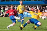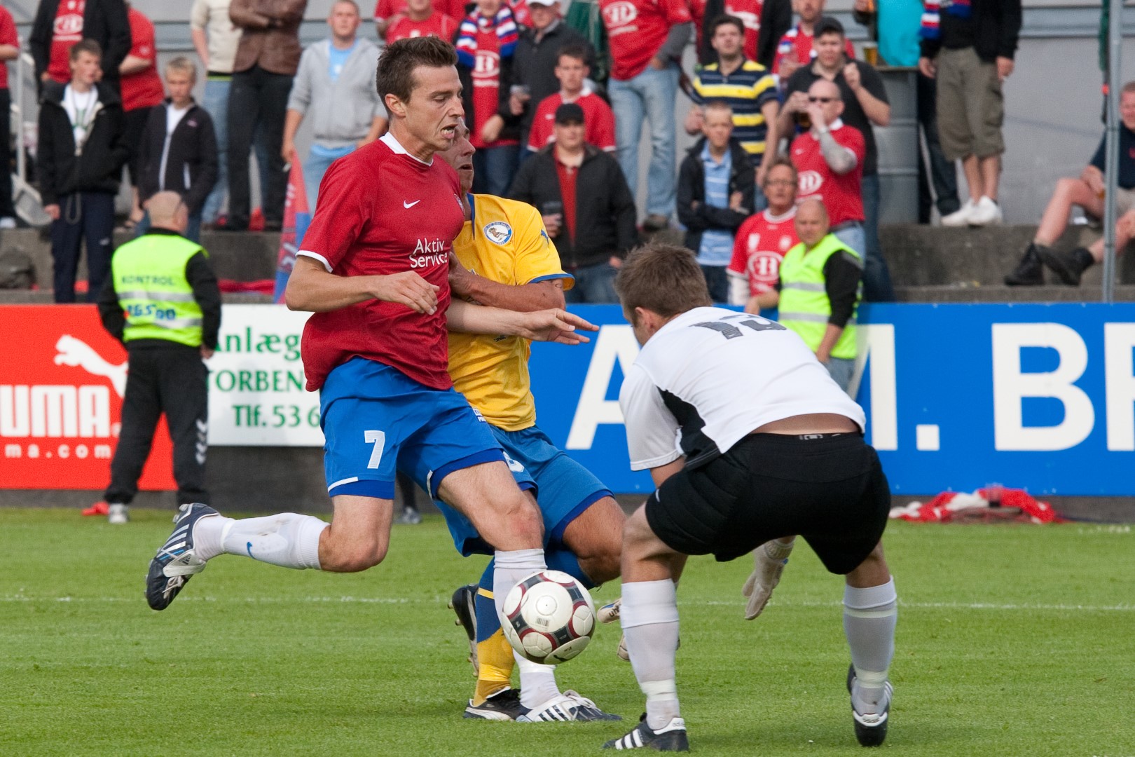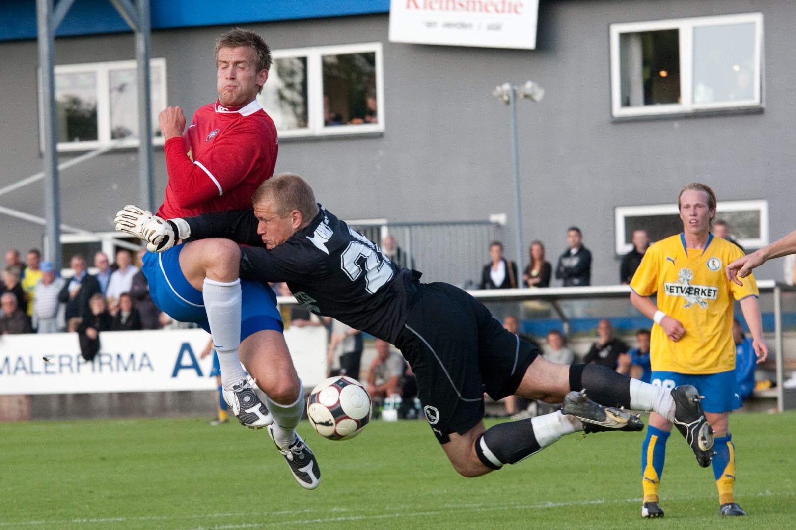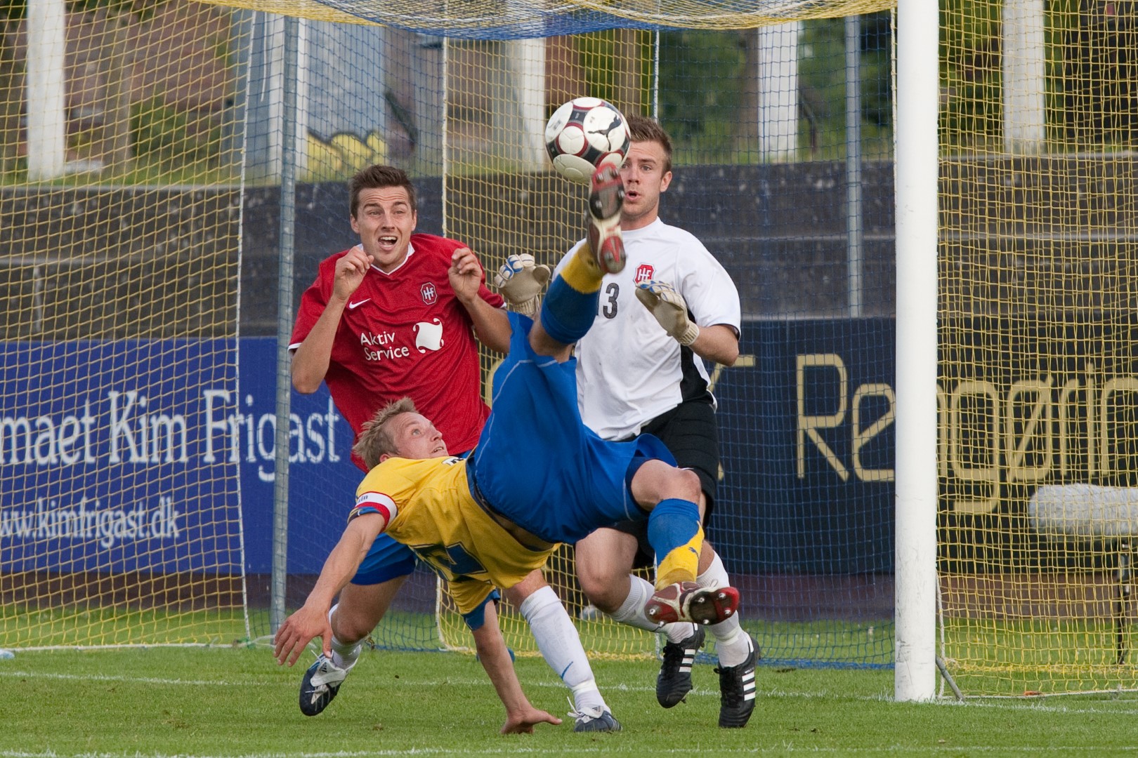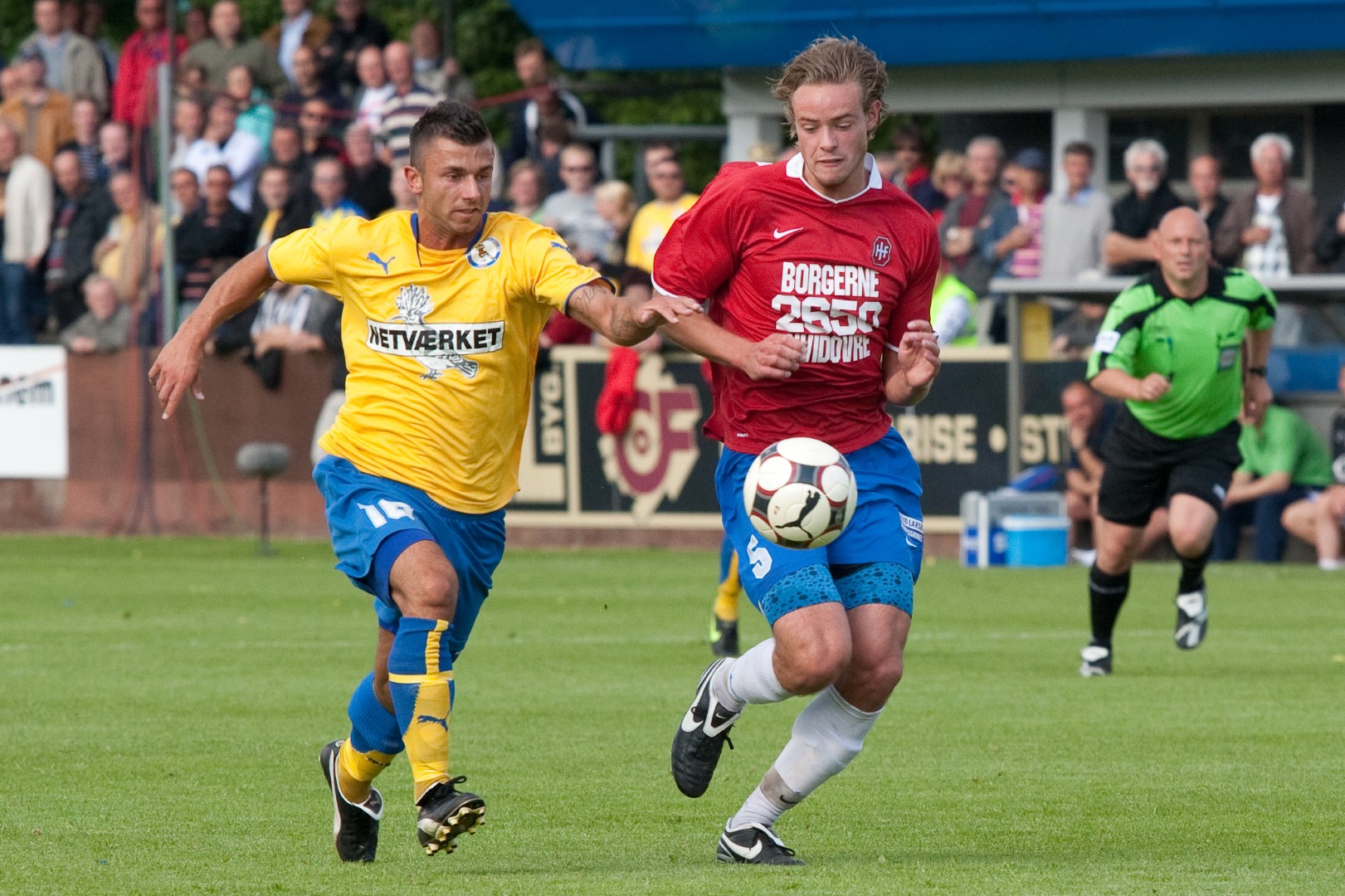En helt igennem underlig forårssæson, skulle i dag afsluttes på Herfølge Stadion. Herfølge som allerede inde kampen havde sikret sig oprykningen til Superligaen, stillede med et helt hold nye spillere, og kun een var genganger fra ugens startopstilling mod AB. Endvidere var det også Herfølges sidste kamp på topplan, da de fra næste sæson bliver slået sammen med Køge Boldklub under navnet HB Køge. De første 20 minutter, står der HIF på. Hvidovre formår at få presset Herfølge tilbage, og det var kun få gange, man så dem fremme i Hvidovres felt. Det blev til et par enkelte HIF chancer, og måske et manglende straffespark, da Anders Clausen bliver skubbet omkuld, med begge Herfølge-forsvarerens hænder i ryggen - det er tydeligt hvorfra jeg står, men det kan være at Clausen faldt lige lovligt let. Til gengæld bliver HIF snydt for et af de store straffespark, da Walldo bliver nedlagt i feltet af Herfølges målmand. Efter et forsøg, som målmanden parerer, triller bolden ud til siden, og Walldo forsøger at løbe den op. Herfølges målmand stikker dog - benet eller armen - op i knæhaserne på Walldo, og han falder omkuld. Men også denne gang, er dommerens fløjte tavs. Herfølges, indtil nu, største chance, kommer efter 20 minutter, da de får bolden i nettet. Men liniedommeren vinker for offside. Den næste store chance får Herfølge i det 25. minut, da de efter et rigtig godt opspil på kanten, får spillet bolden i feltet, men afslutningen fra midten af HIF-feltet, tager oversiden af overliggeren. I det 39. minut, kommer så første scoring. Herfølge får presset HIF efter et indlæg til fjerneste stolpe, og med ryggen mod Hvidovremålet får Anders Dahl Simonsen saksesparket bolden over Lasse Krogh. 1-0, og det kan der egentlig ikke rokkes ved. Minuttet senere får HIF så muligheden, men Walldo får ikke hovedet ordentligt på et ellers godt indlæg, og Herfølge får afværget.