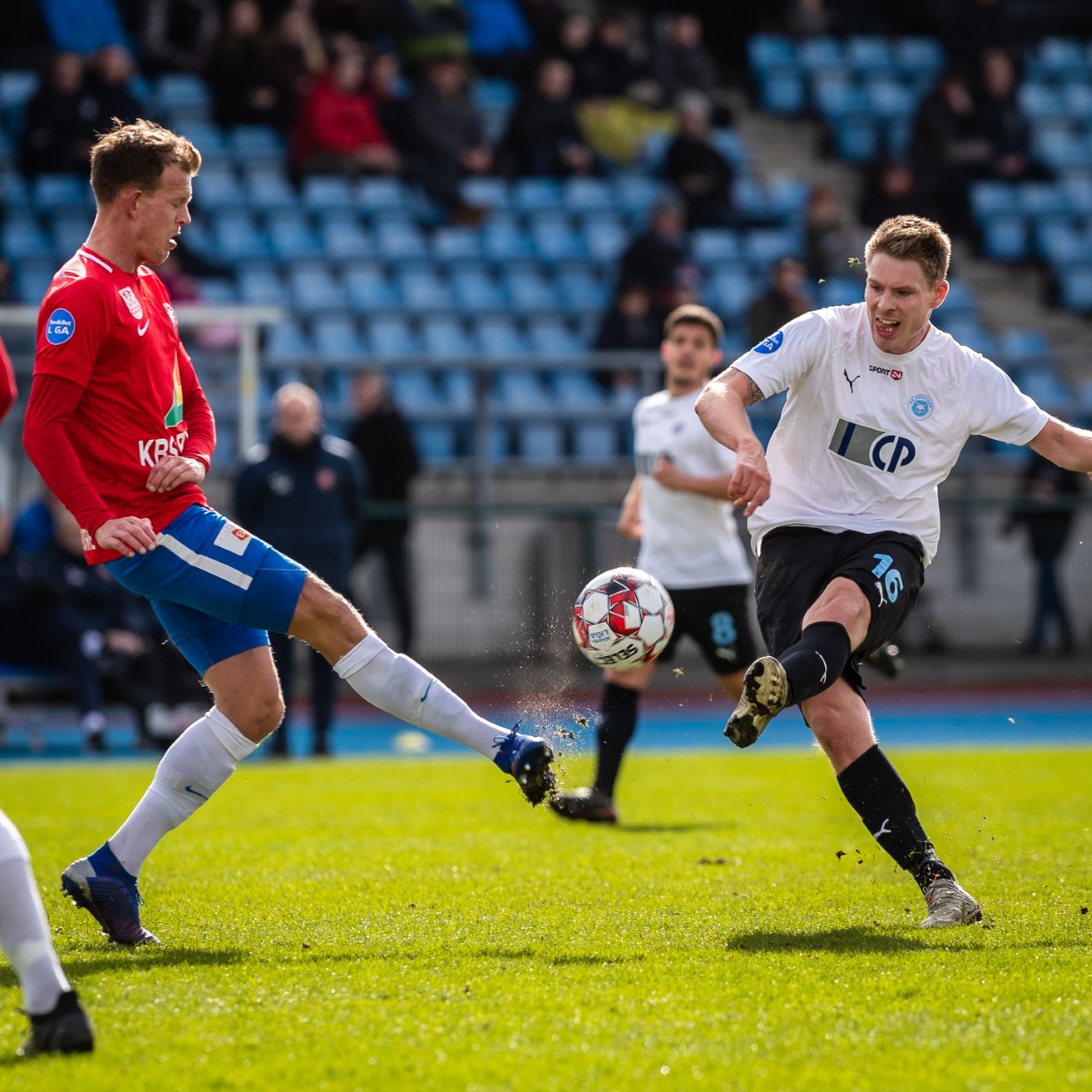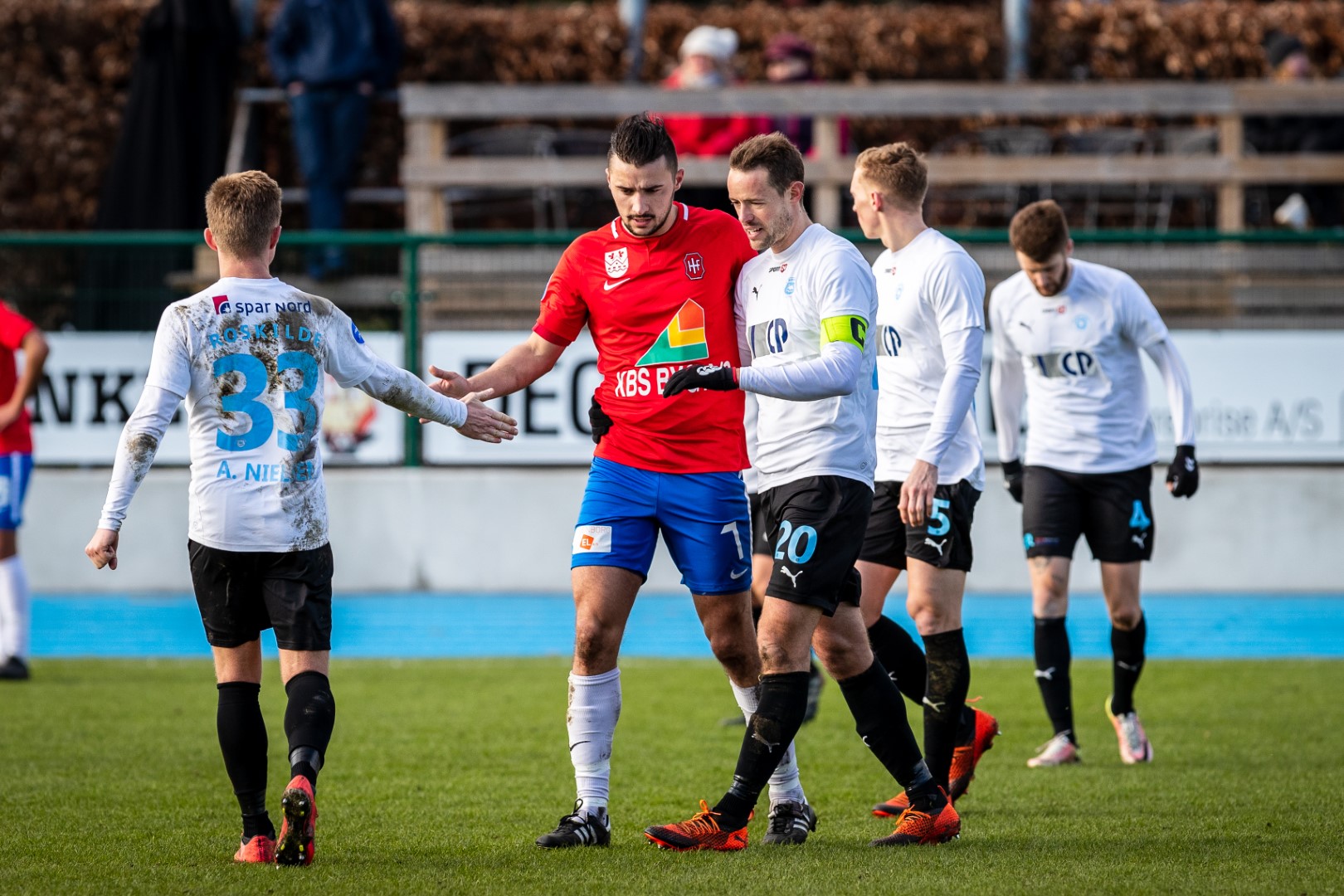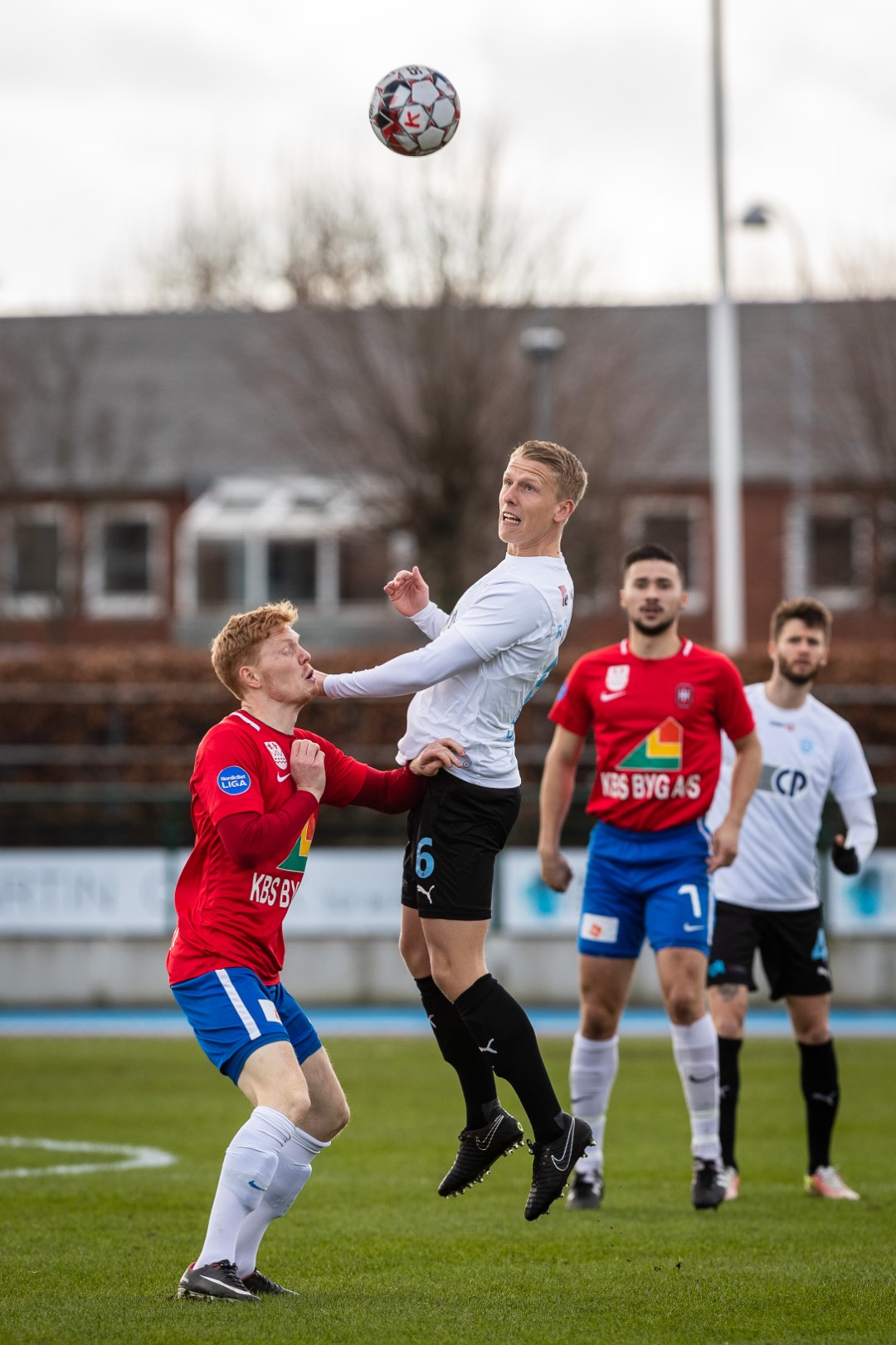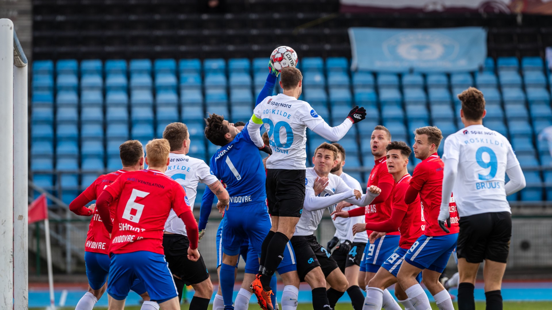 Den overraskende sejr i Viborg i sidste uge, skulle i dag følges op mod FC Roskilde, der inden dagens opgør var placeret sidst i tabellen. HIF startede med en kraftig modvind, og det udnyttede Roskilde. I det 5. minut får FC Roskilde hjørnespark, og det sendes, med vindens hjælp, ind omkring stregen i Hvidovres mål. Her dukker den tidligere HIF'er Stefan Hansen op, og header bolden ind over stregen til en tidlig Roskilde-føring. Kort tid efter, er det ved at gentage sig, men i denne omgang slipper HIF med skrækken. I det 22. minut får Hvidovre-mandskabet en kæmpe mulighed, da Kim Aabech lægger en perfekt bold ind i det lille felt, hvor Nicklas Bjerre Schmidt står placeret, og han drejer bolden med hovedet mod Roskilde-målet. Desværre for HIF vælger Roskildes målmand at diske op med en hurtig reaktion, og ingen udligning i denne omgang. 5 minutter senere får HIF endnu en god mulighed efter indlæg fra Frederik Emil Andersen, men hverken Lirim Qamili eller Alexandar Lazarevitz ram på bolden, og så får Roskilde sparket væk. I det 33. minut sendes en høj bold ind på HIFs banehalvdel, og bageste mand, Emil Vatani, får ikke stoppet bolden, som ryger under hans fod, og hen til Emil Larsen, der får frit løb mod mål. Vatani vender rundt og løber ham næsten op, men Emil Larsen stopper op ind i HIF-feltet, og med indersiden sender han bolden uden om Filip Djukic og ind ved fjerneste stolpe. HIF får en gylden mulighed for reduktion blot 3 minutter senere, da der tilkendes et straffespark for hånd på bolden i feltet. Kim Aabech sættes til at sparke, og han forsøger at placere bolden ude ved venstre stolpe, men desværre for Aabech og HIF, tager bolden indersiden, og løber på tværs lige foran mållinjen.