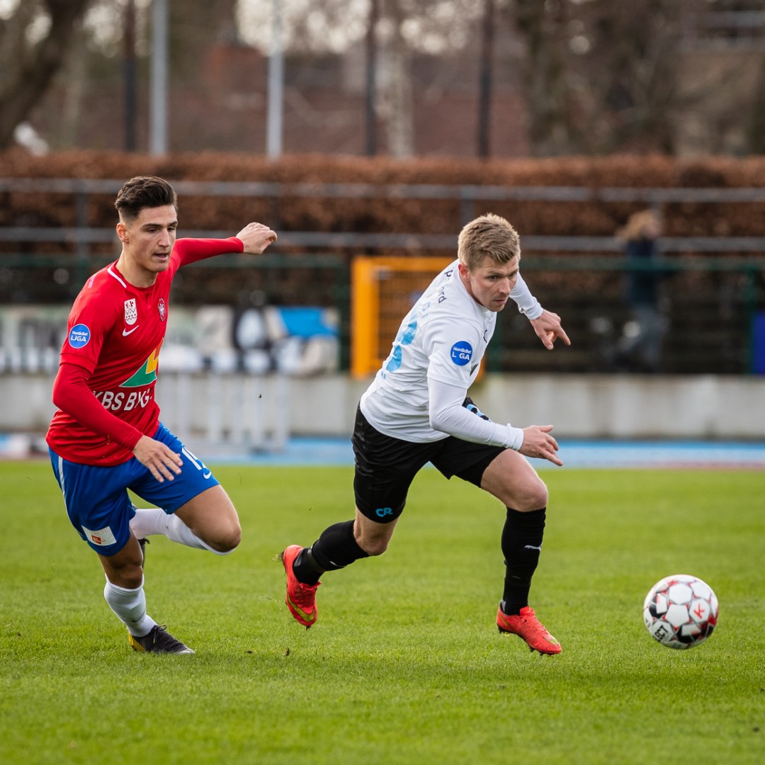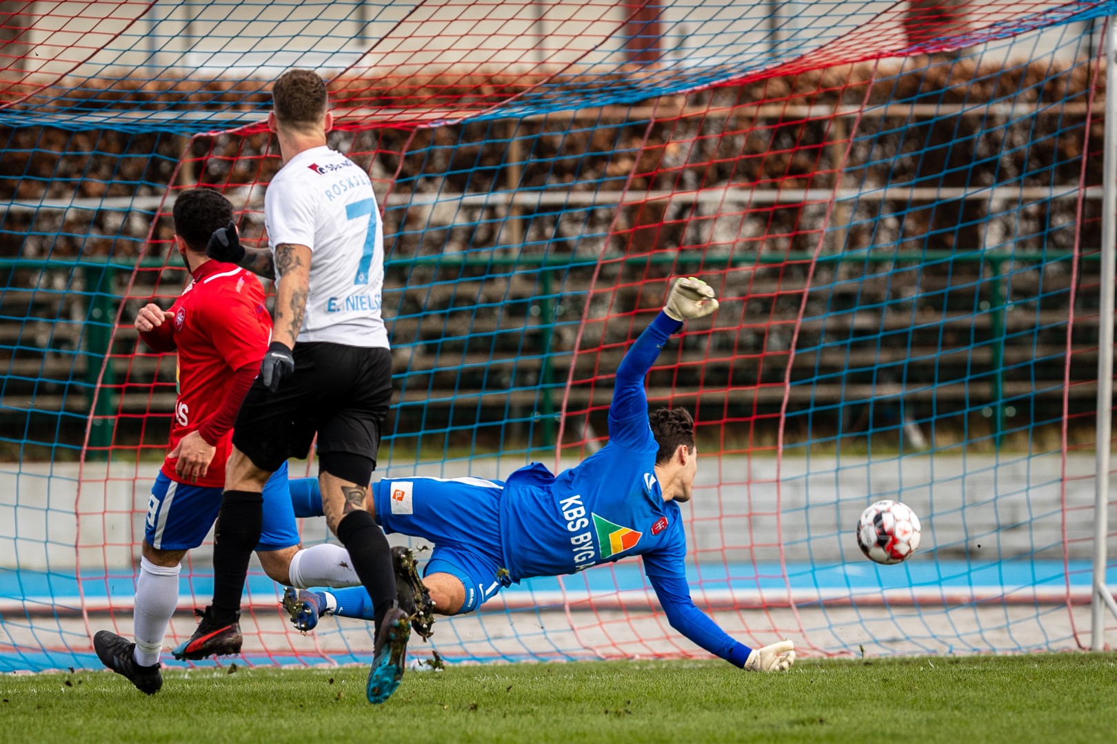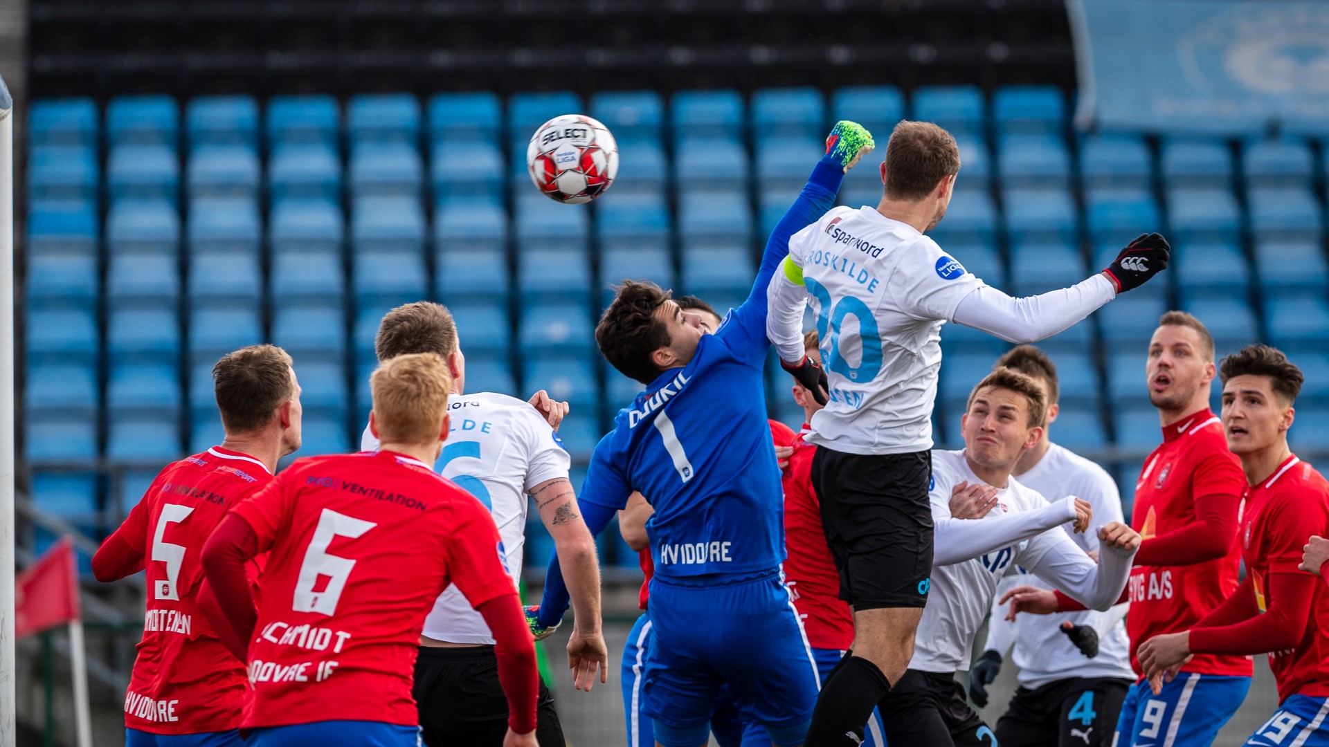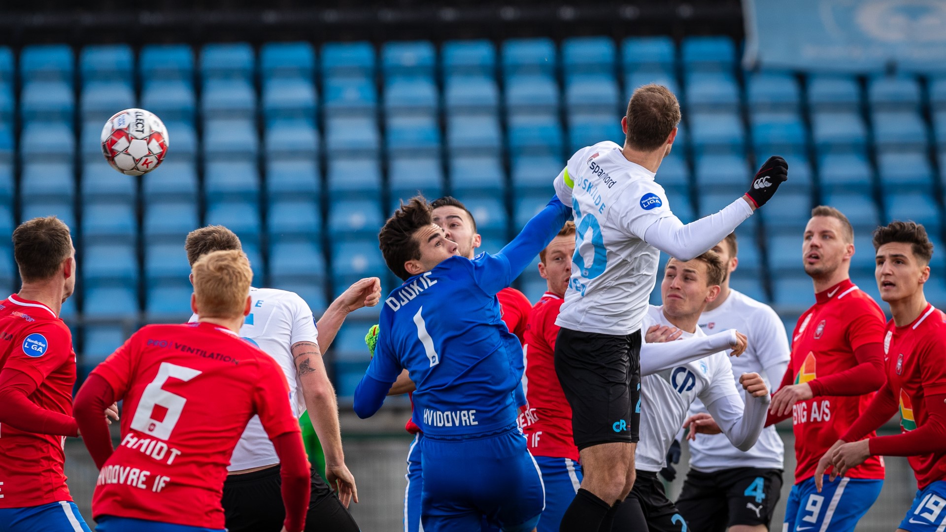Den overraskende sejr i Viborg i sidste uge, skulle i dag følges op mod FC Roskilde, der inden dagens opgør var placeret sidst i tabellen. HIF startede med en kraftig modvind, og det udnyttede Roskilde. I det 5. minut får FC Roskilde hjørnespark, og det sendes, med vindens hjælp, ind omkring stregen i Hvidovres mål. Her dukker den tidligere HIF'er Stefan Hansen op, og header bolden ind over stregen til en tidlig Roskilde-føring. Kort tid efter, er det ved at gentage sig, men i denne omgang slipper HIF med skrækken. I det 22. minut får Hvidovre-mandskabet en kæmpe mulighed, da Kim Aabech lægger en perfekt bold ind i det lille felt, hvor Nicklas Bjerre Schmidt står placeret, og han drejer bolden med hovedet mod Roskilde-målet. Desværre for HIF vælger Roskildes målmand at diske op med en hurtig reaktion, og ingen udligning i denne omgang. 5 minutter senere får HIF endnu en god mulighed efter indlæg fra Frederik Emil Andersen, men hverken Lirim Qamili eller Alexandar Lazarevitz ram på bolden, og så får Roskilde sparket væk. I det 33. minut sendes en høj bold ind på HIFs banehalvdel, og bageste mand, Emil Vatani, får ikke stoppet bolden, som ryger under hans fod, og hen til Emil Larsen, der får frit løb mod mål. Vatani vender rundt og løber ham næsten op, men Emil Larsen stopper op ind i HIF-feltet, og med indersiden sender han bolden uden om Filip Djukic og ind ved fjerneste stolpe. HIF får en gylden mulighed for reduktion blot 3 minutter senere, da der tilkendes et straffespark for hånd på bolden i feltet. Kim Aabech sættes til at sparke, og han forsøger at placere bolden ude ved venstre stolpe, men desværre for Aabech og HIF, tager bolden indersiden, og løber på tværs lige foran mållinjen.